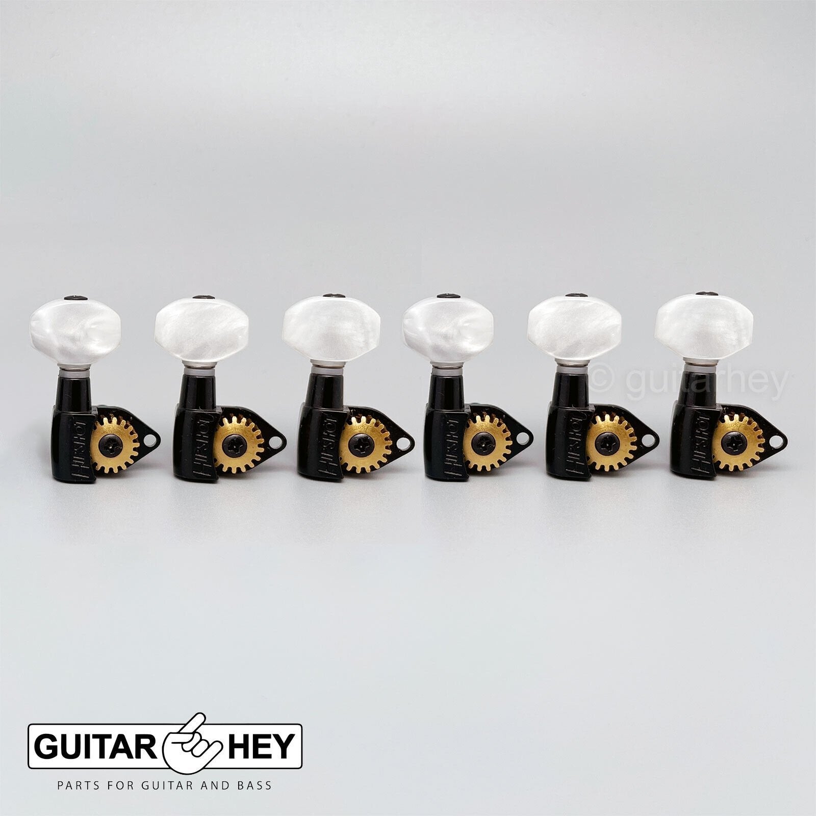 NEW Hipshot Classic Open-Gear Non-Staggered Tuners 6 in line PEARLOID - BLACK