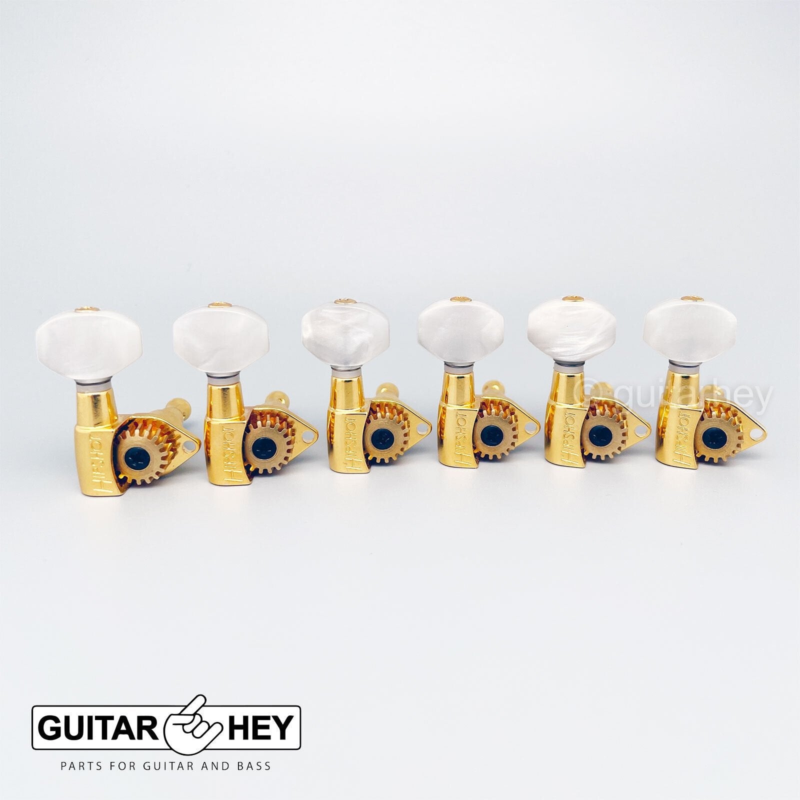 NEW Hipshot Classic Open-Gear Tuners 6 in line Non-Staggered Pearl Buttons, GOLD