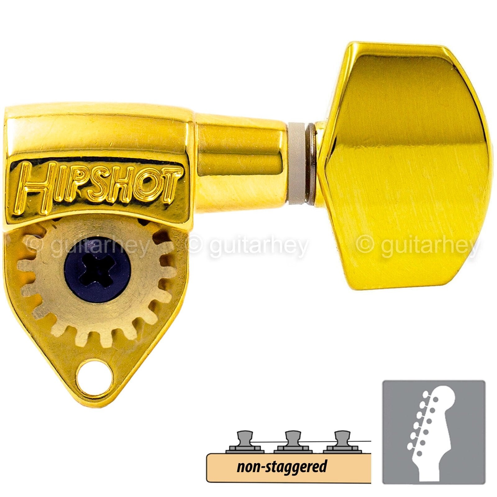 NEW Hipshot Classic Open-Gear Tuners 6 in line Non-Staggered SMALL Buttons, GOLD