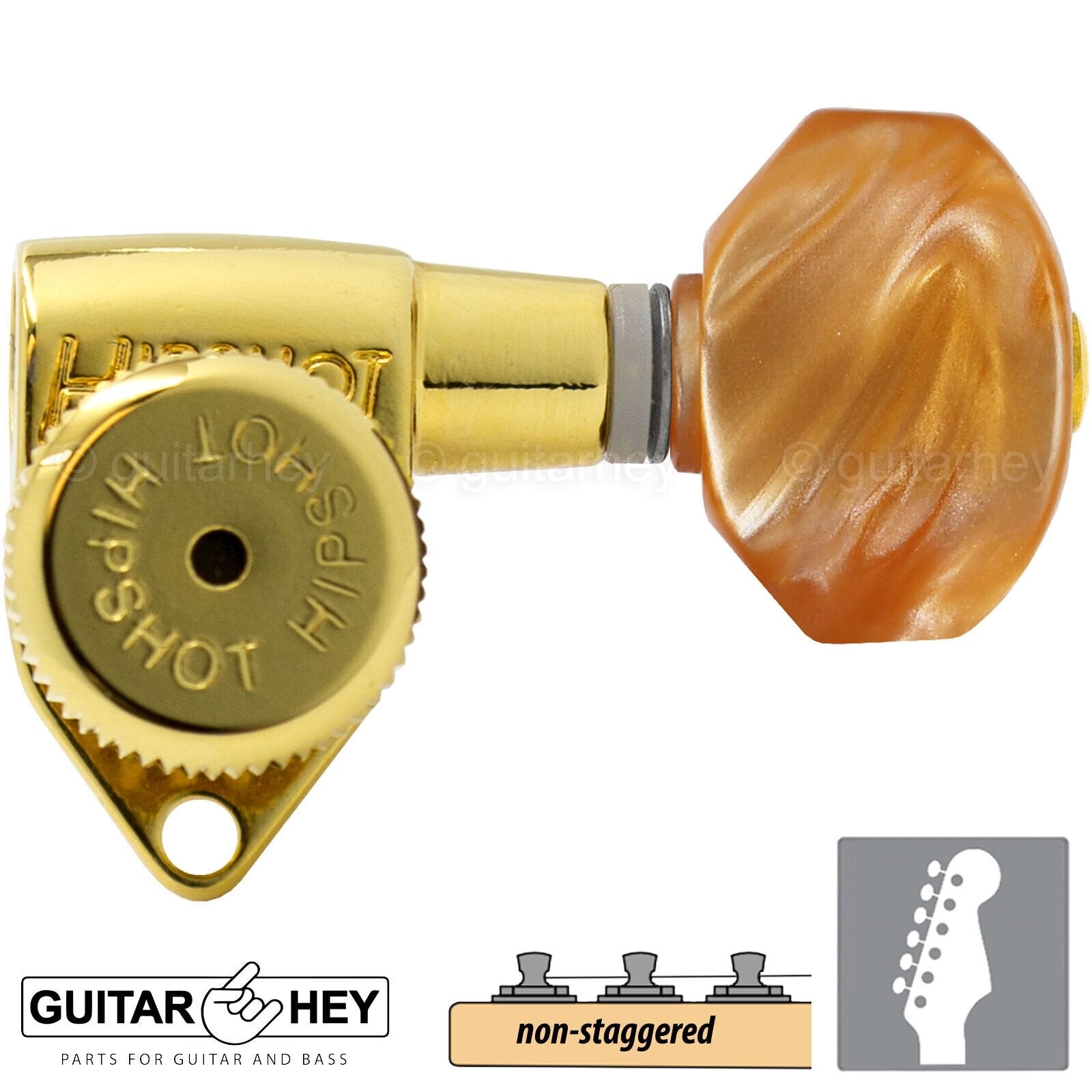 NEW Hipshot Grip-Lock NON-STAG Locking Tuners 6 In Line AMBER Hex Keys - GOLD