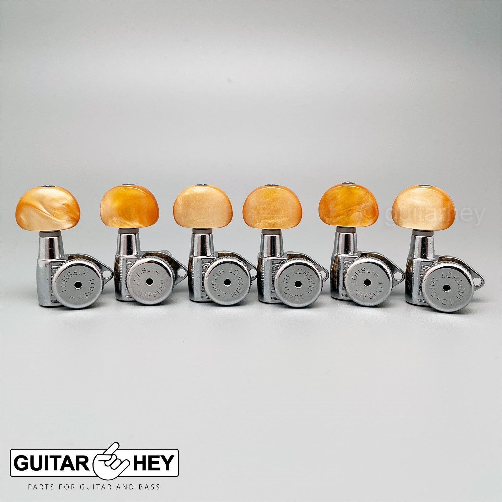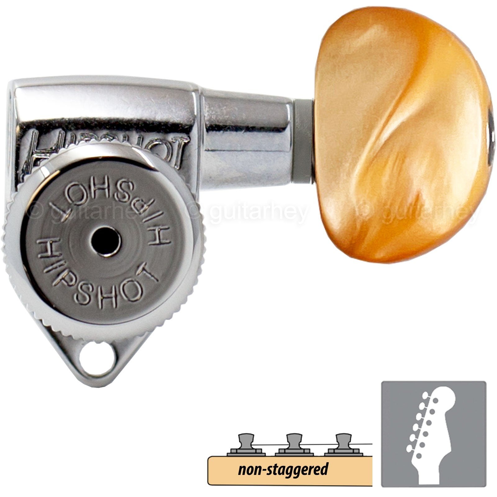 NEW Hipshot Grip-Lock Non-Staggered LOCKING TUNERS 6 In Line AMBER - CHROME