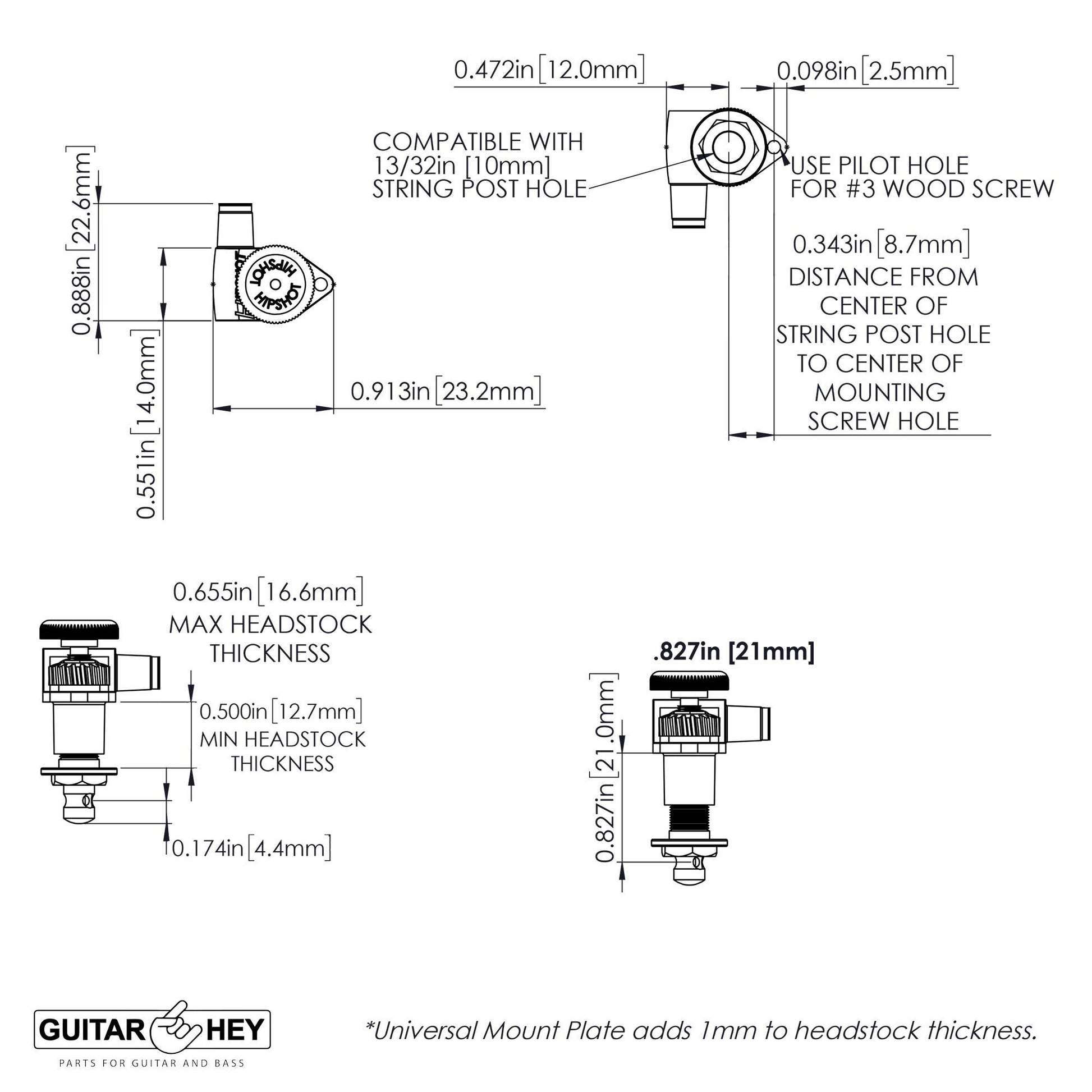 - Included UMP (Universal Mount Plate) for 6 Inline headstocks. No drilling or special tools required
