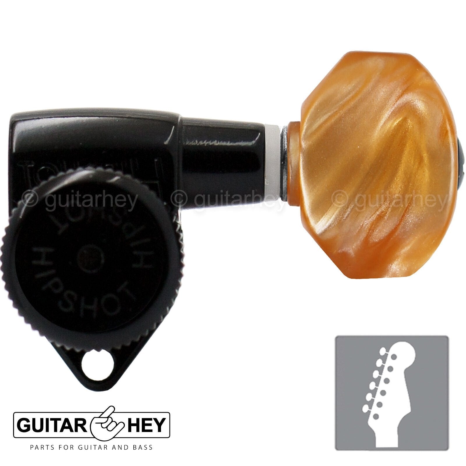 NEW Hipshot Grip-Lock STAGGERED LOCKING TUNERS 6 In Line AMBER Hex Keys - BLACK