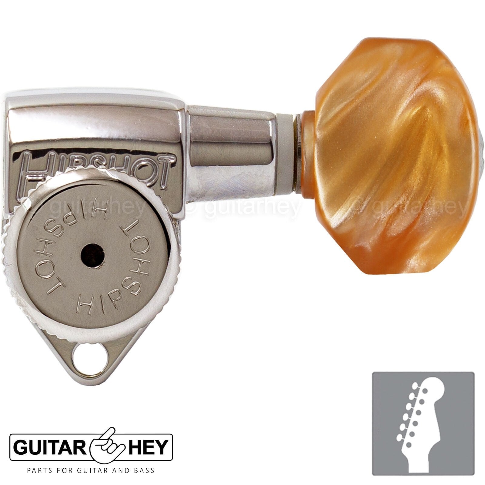 NEW Hipshot Grip-Lock STAGGERED LOCKING TUNERS 6 In Line AMBER Hex Keys - NICKEL