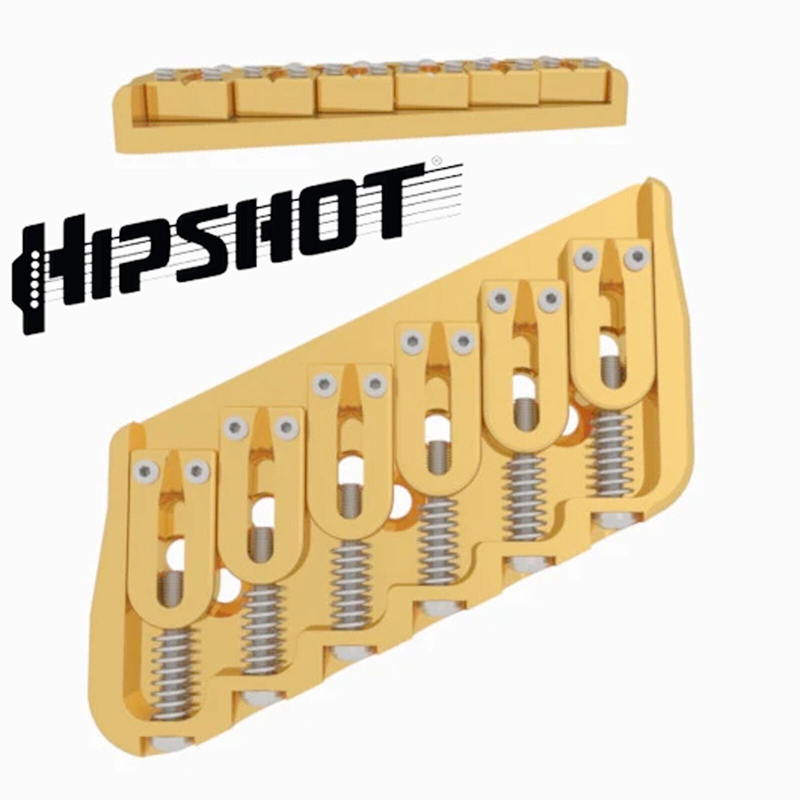 USA Hipshot 6 String Multi-Scale Fixed Guitar Bridge 26° Angle .125" Floor GOLD