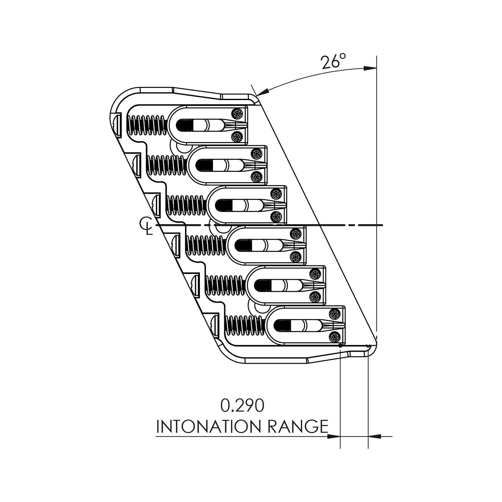 USA Hipshot 6 String Multi-Scale Fixed Guitar Bridge 26° Angle .175" Floor BLACK