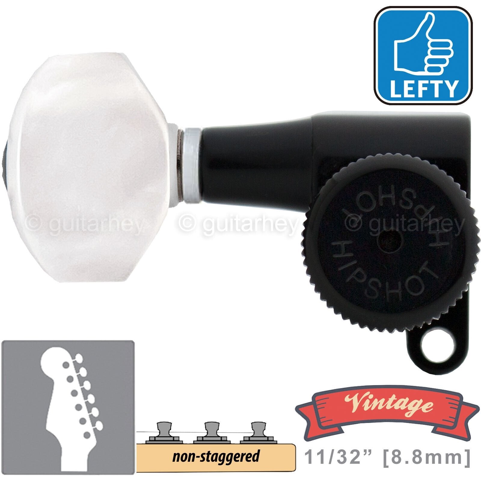 VINTAGE Hipshot 6-in-Line Locking Non-Staggered HEX Pearl, LEFT-HANDED, BLACK