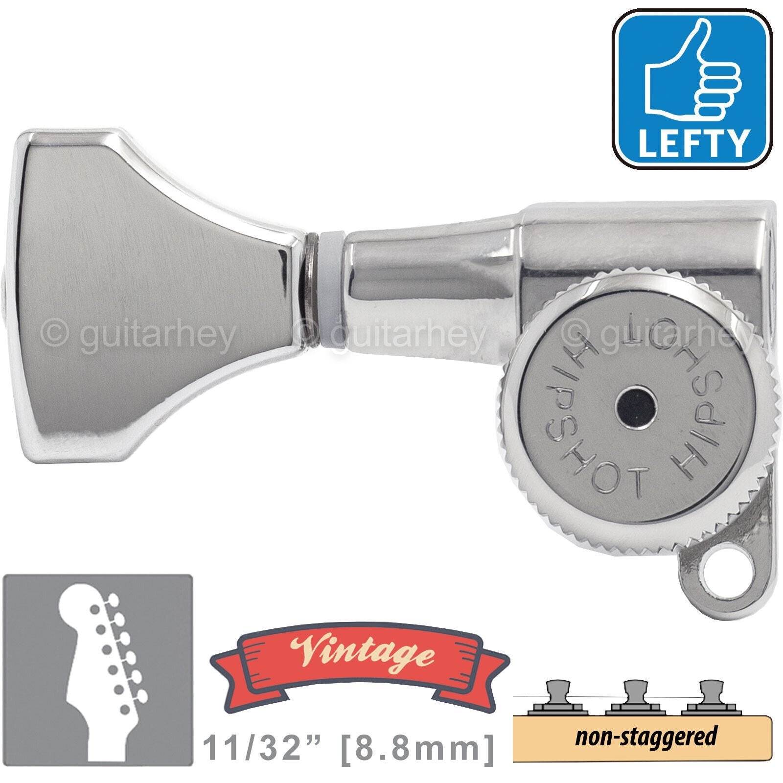 VINTAGE Hipshot 6-in-Line Locking NON-Staggered HS Buttons, LEFT-HAND, CHROME