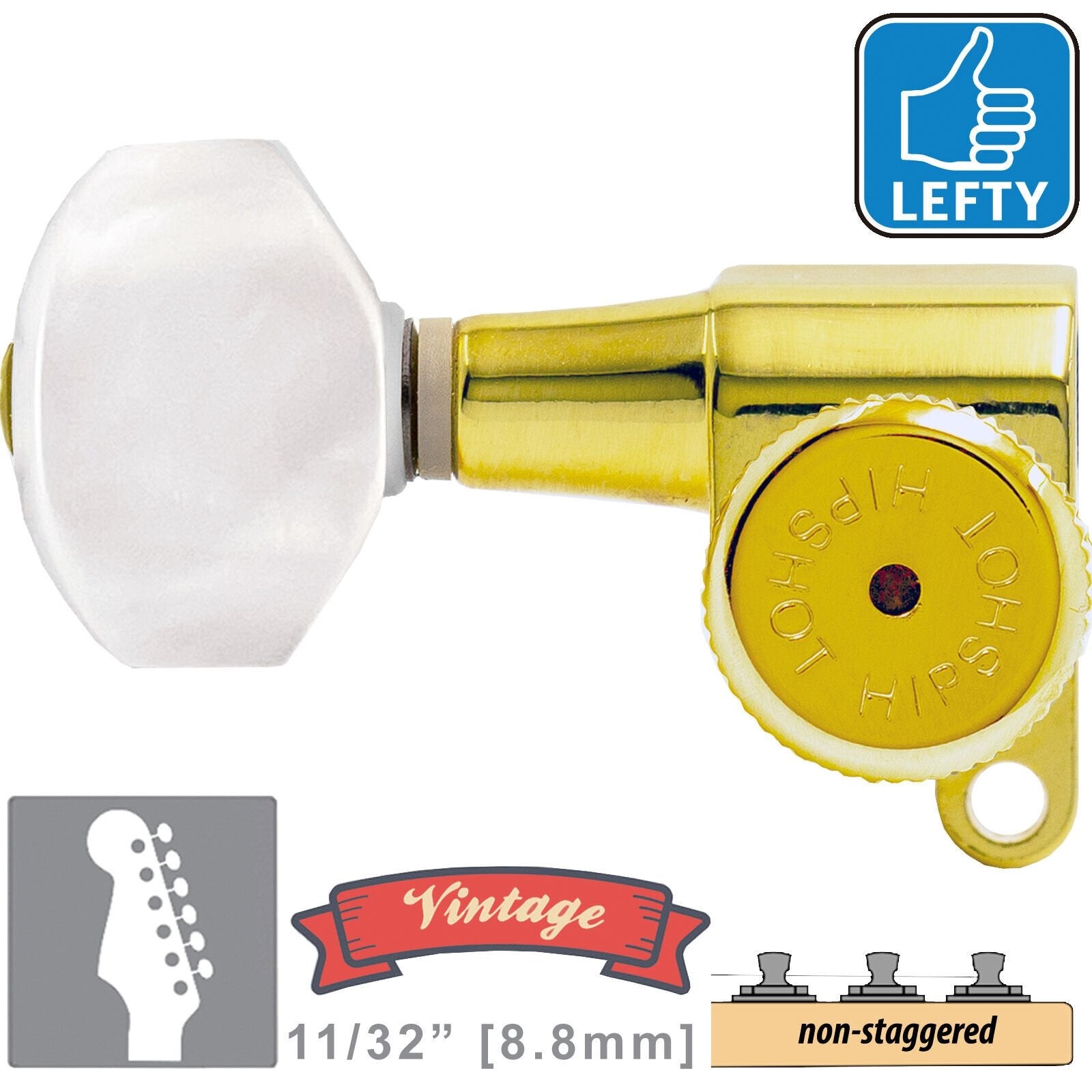 VINTAGE Hipshot 6-in-Line Locking NON-Staggered Keys HEX Pearloid LEFT-HAND GOLD