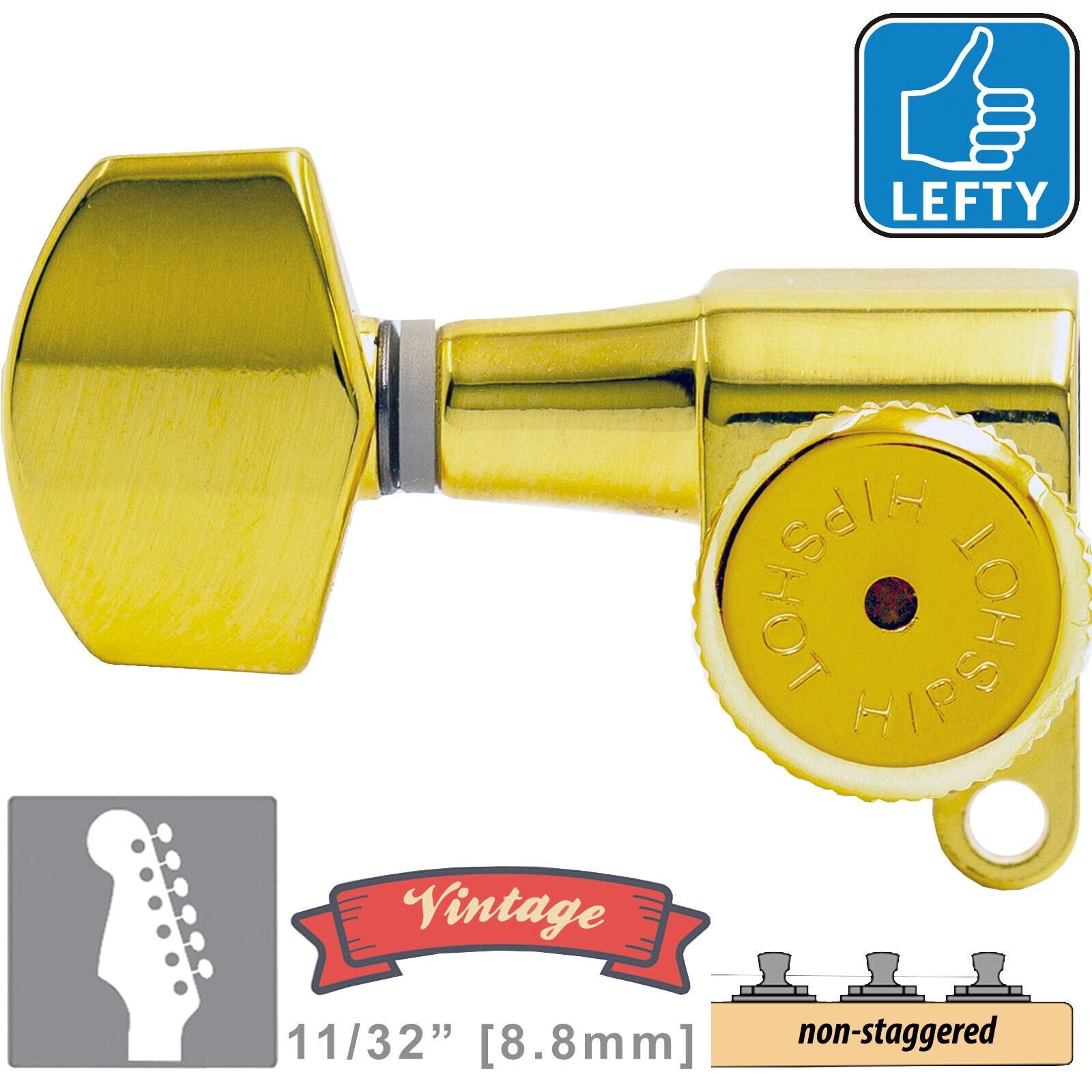 VINTAGE Hipshot 6-in-Line Locking NON-Staggered Keys SMALL Button LEFT-HAND GOLD