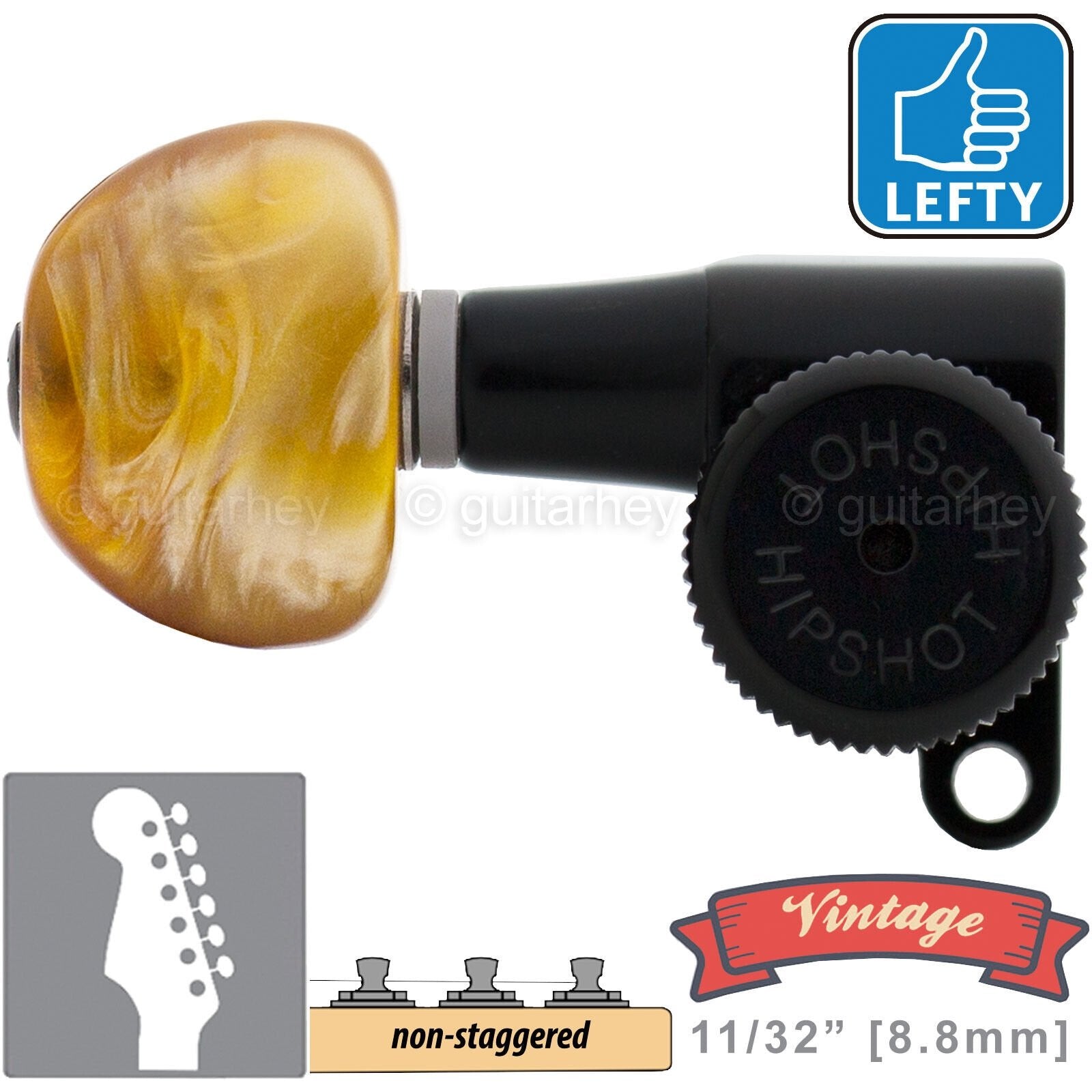 VINTAGE Hipshot 6-in-Line Locking Non-Staggered MOON Amber, LEFT-HANDED, BLACK