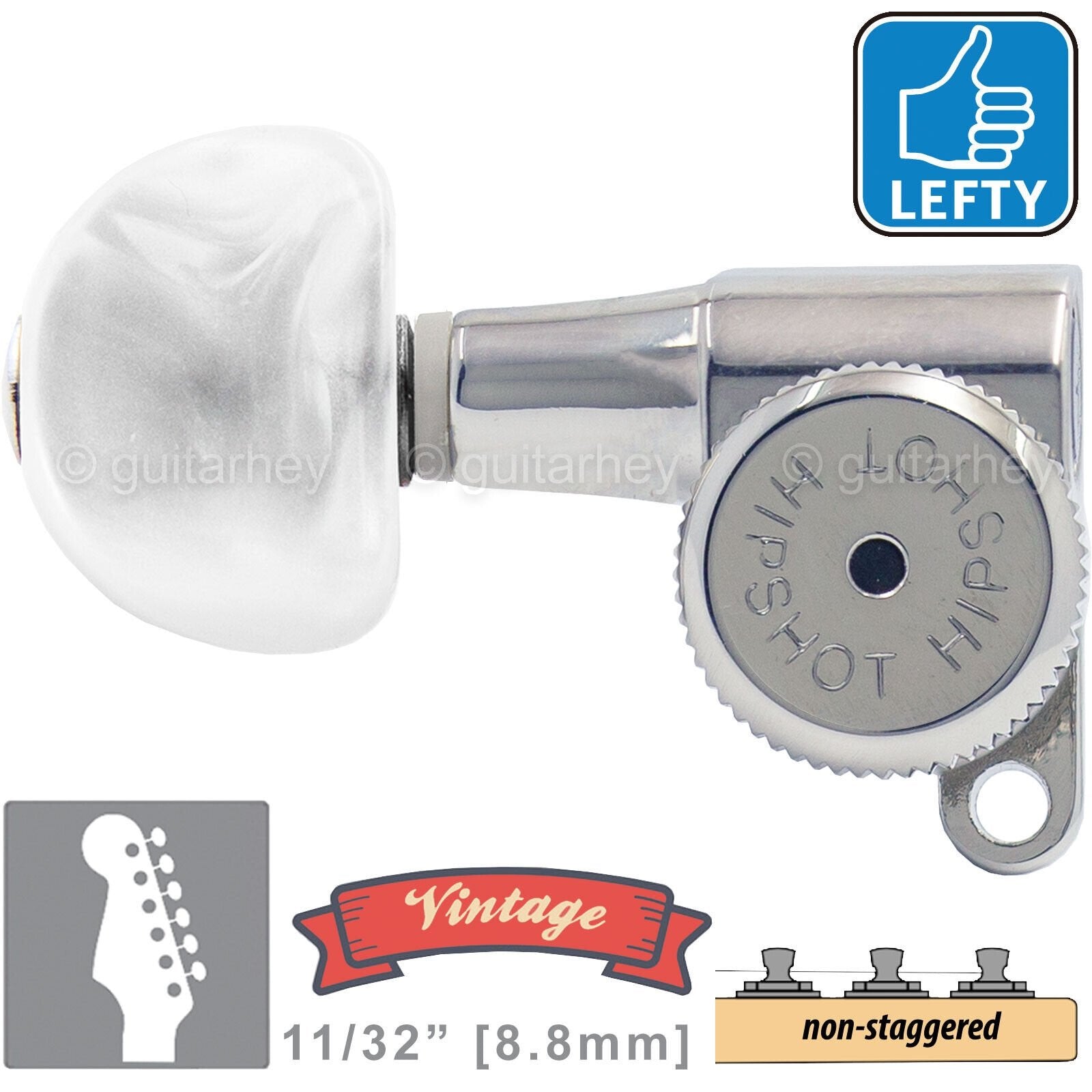 VINTAGE Hipshot 6-in-Line Locking NON-Staggered MOON Pearloid, LEFT-HAND, CHROME