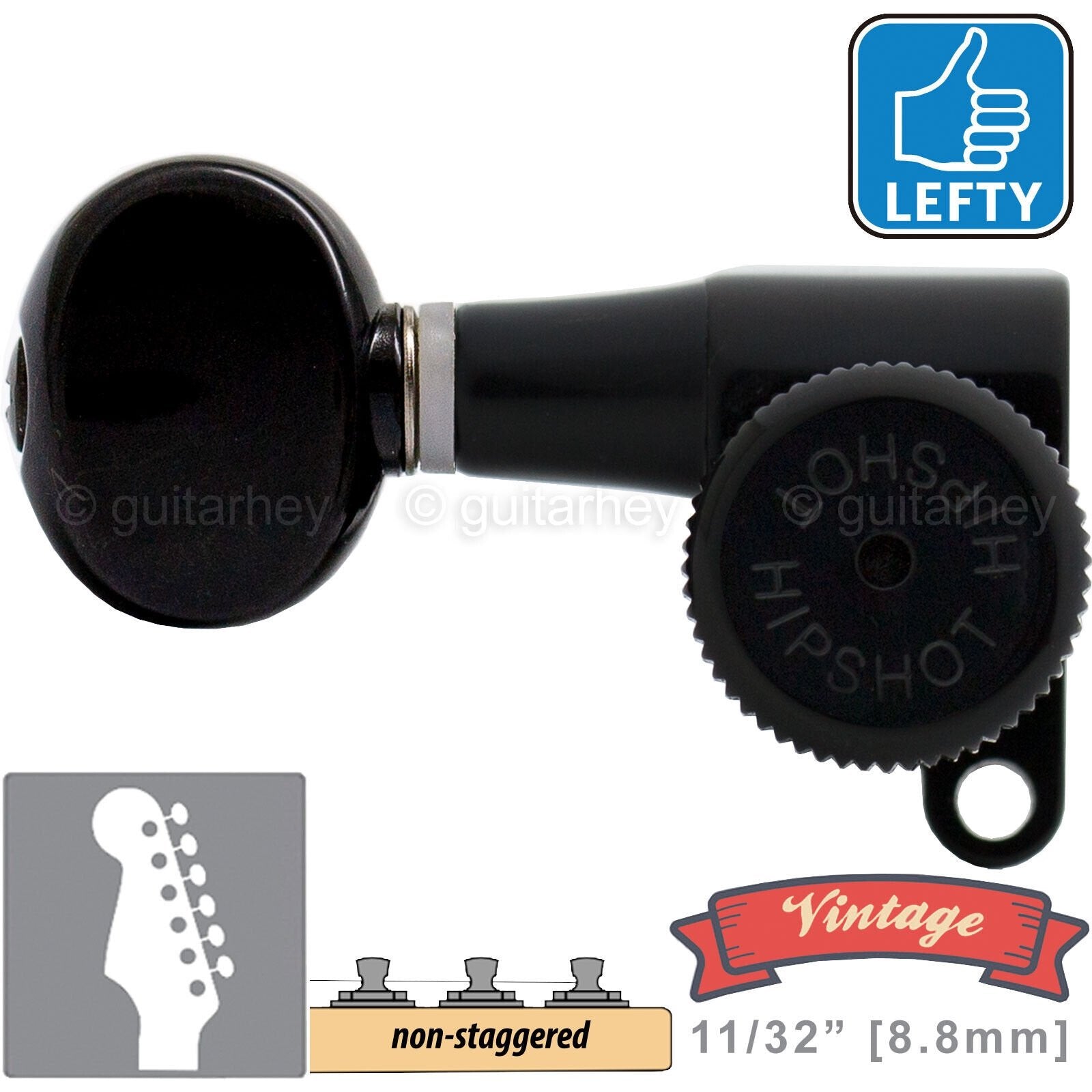 VINTAGE Hipshot 6-in-Line Locking Non-Staggered OVAL Butttons LEFT-HANDED, BLACK
