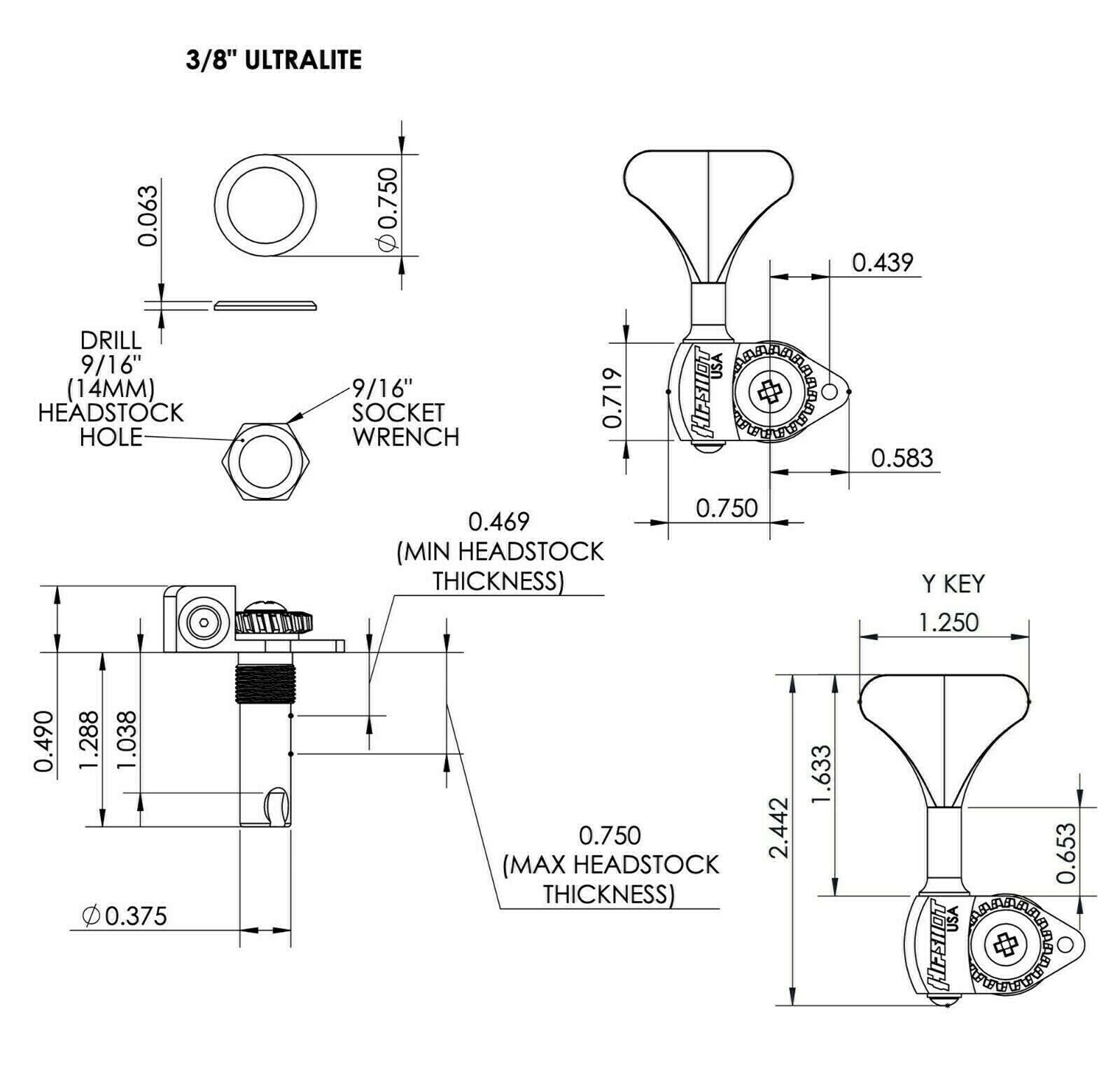 Any sore shouldered bassist can tell you that fighting "neck dive" from a poorly balanced instrument is akin to slow torture. Our Ultralite® bass tuning machines are designed and manufactured to lighten up the load while improving ruggedness and accuracy. Spend more time on the bass-not at the chiropractor.
