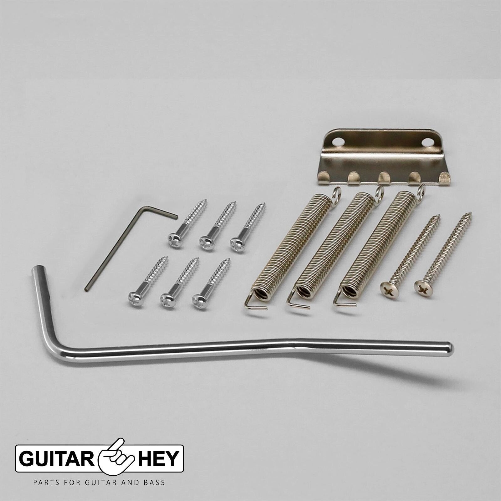 The tremolo block is designed to allow the strings to contact the saddle without touching the block as it passes through which increases sustain and tuning stability.