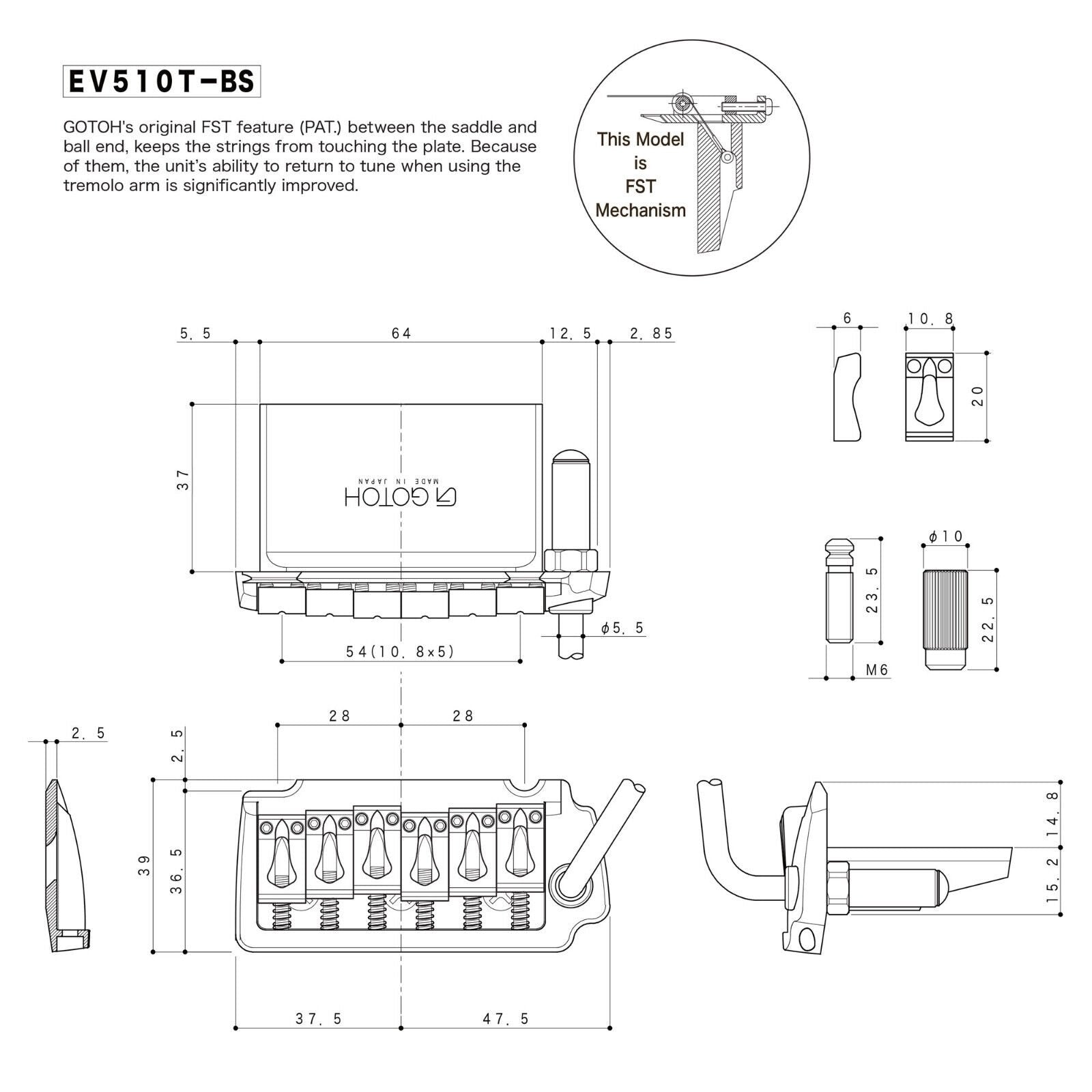 NEW Gotoh EV510T-BS Non-locking 2 Point Tremolo Bridge w/ 37mm Block - CHROME