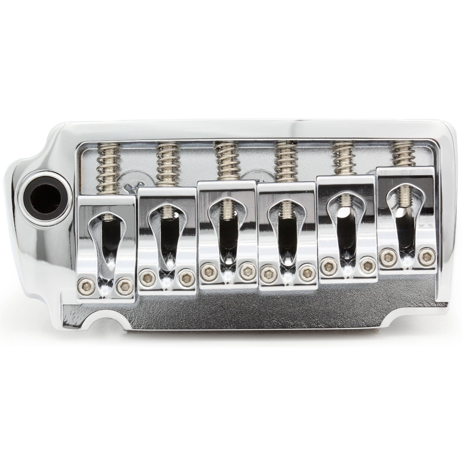 The tremolo block is designed to allow the strings to contact the saddle without touching the block as it passes through which increases sustain and tuning stability.
