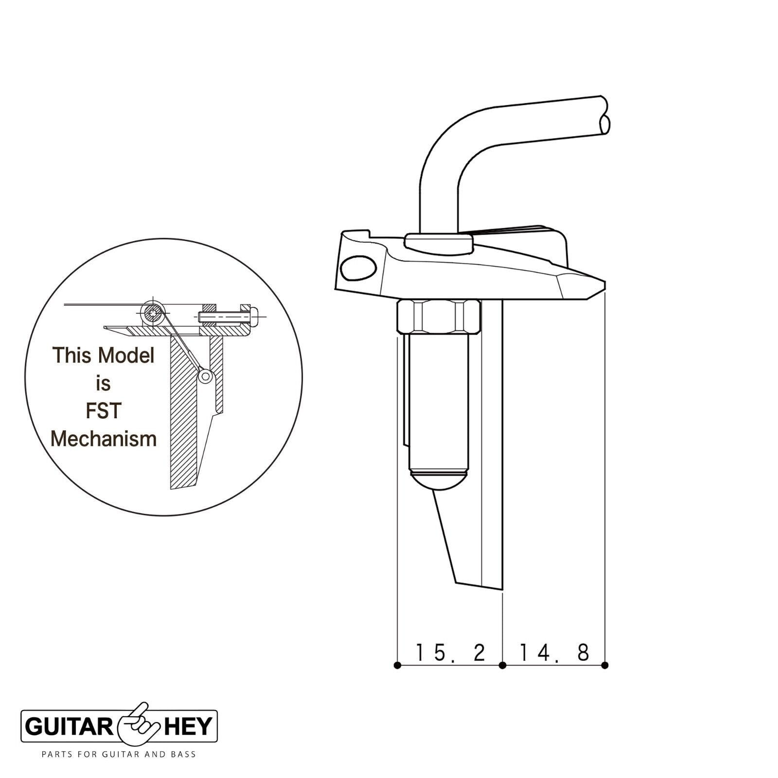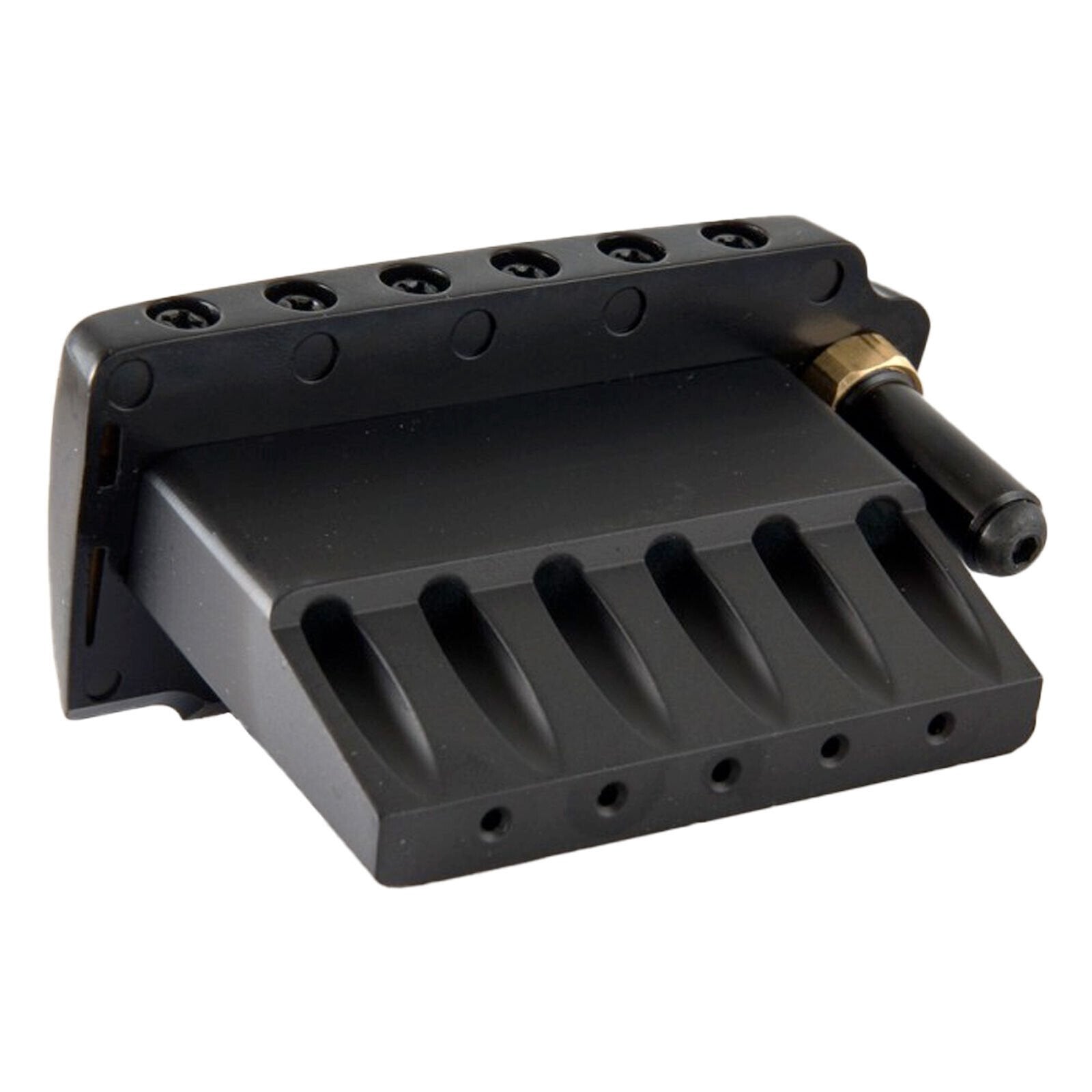 The tremolo block is designed to allow the strings to contact the saddle without touching the block as it passes through which increases sustain and tuning stability.