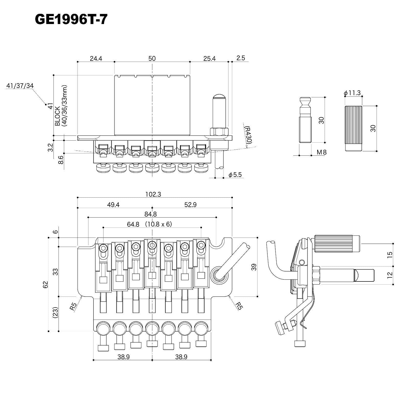 NEW Gotoh GE1996T-7 Floyd Rose Locking Tremolo 7-String 33mm Block - COSMO BLACK