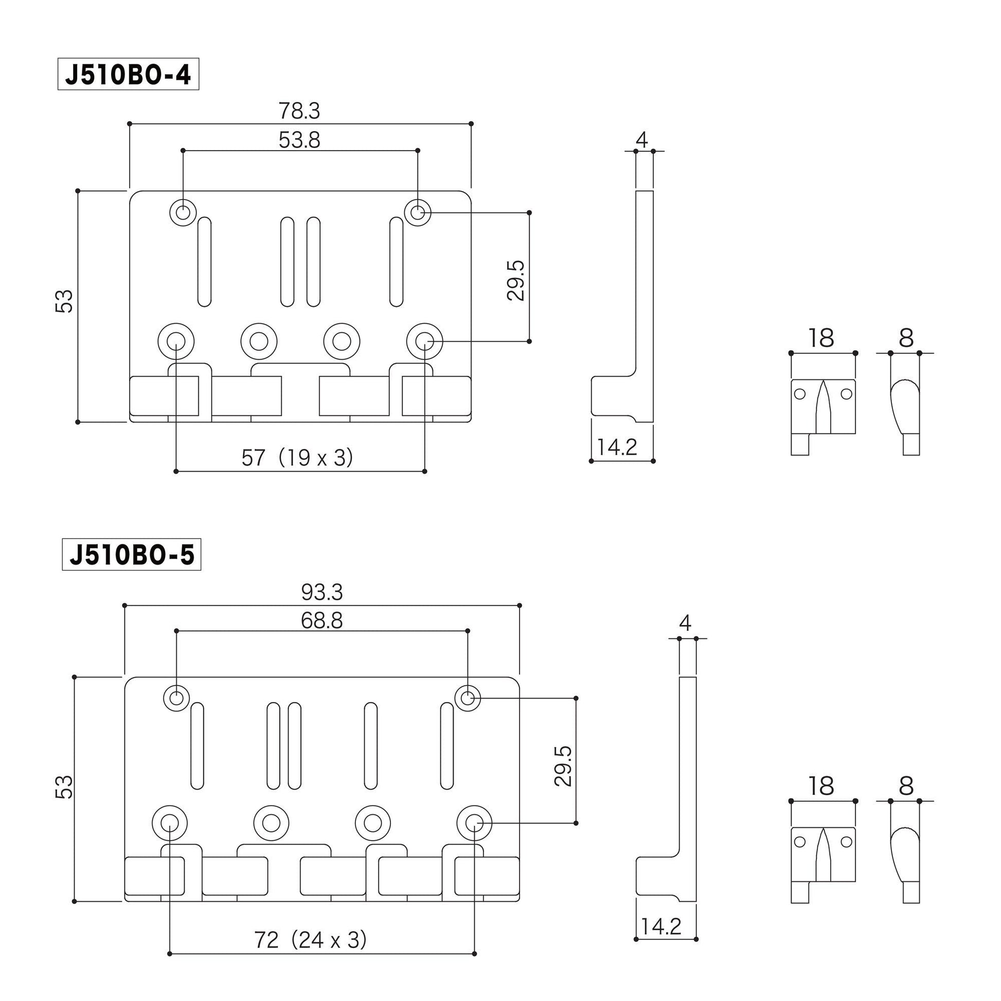 With the ability to choose the combination of base plate and saddle freely, the J510 bass bridge series meets the exacting needs of bass players and custom builders.