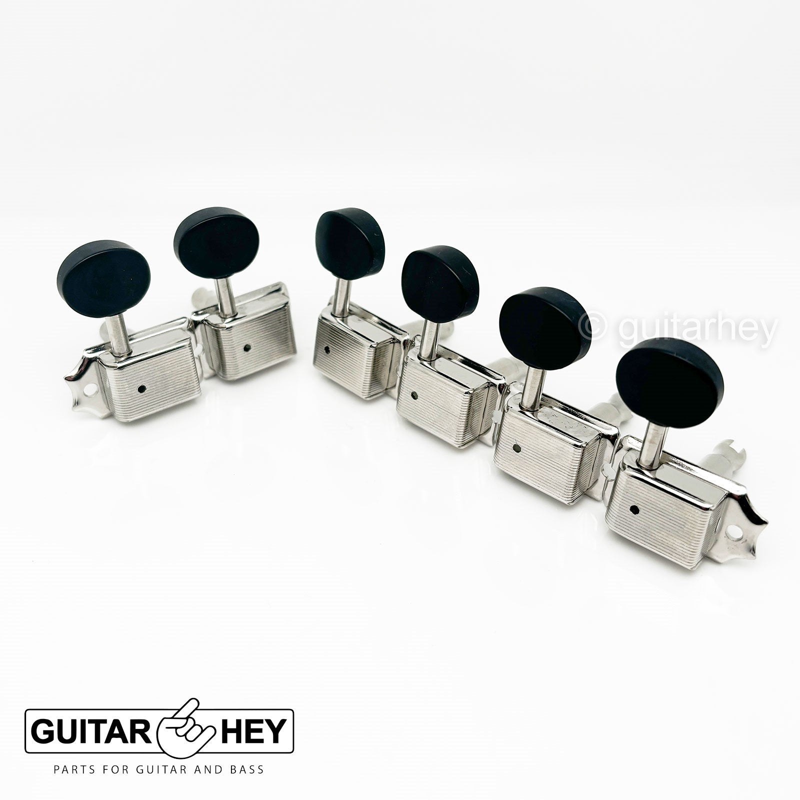 Gotoh SD91 vintage style 6-in-line tuning keys with nickel finish. 15:1 ratio. Includes screws and bushings. Identical to Fender® part 099-2040-000. Popular replacement keys for Stratocaster® and Jazzmaster® guitars.