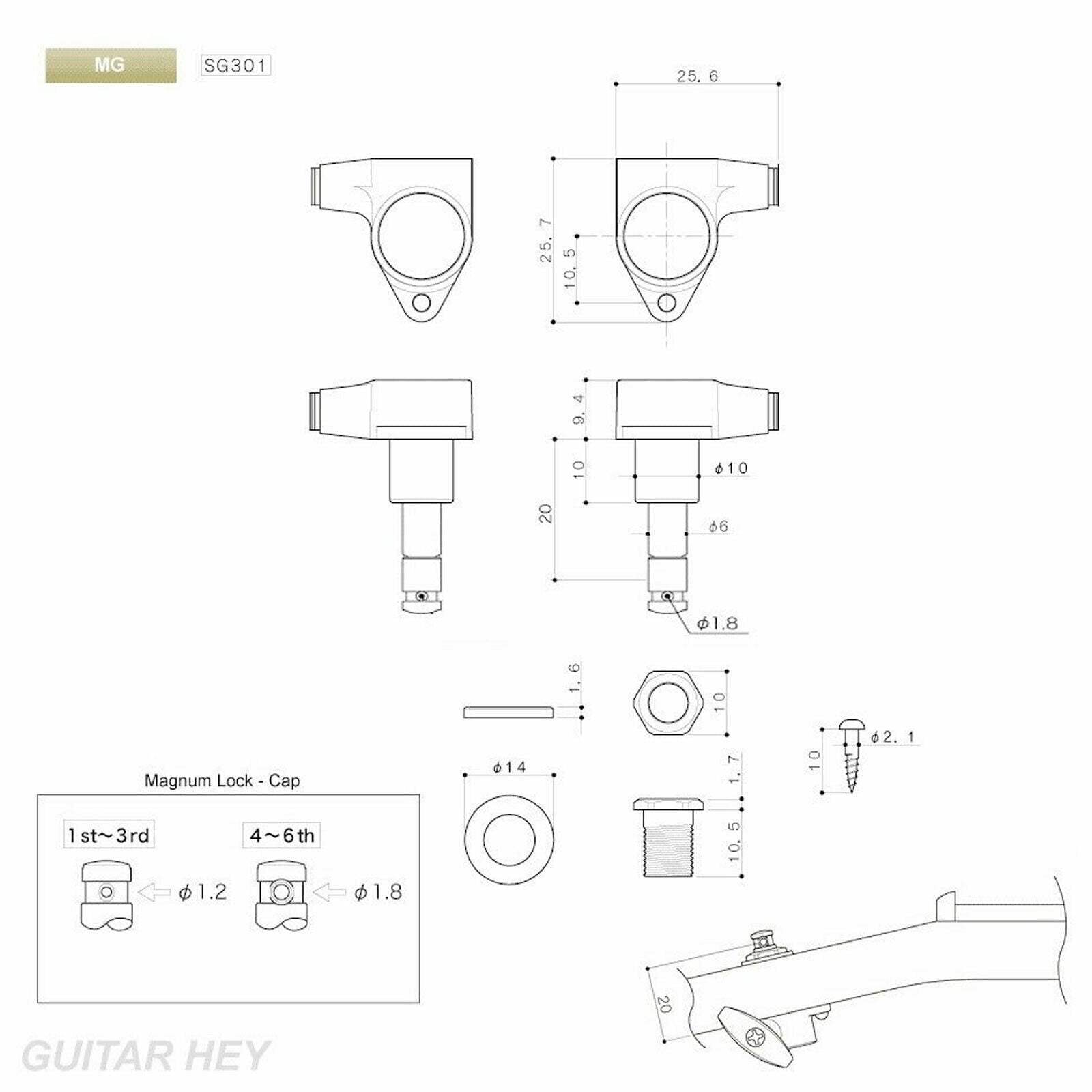 NEW Gotoh SG301-EN01 MG L3+R3 LOCKING Tuners Set Large EBONY Buttons 3x3 - GOLD