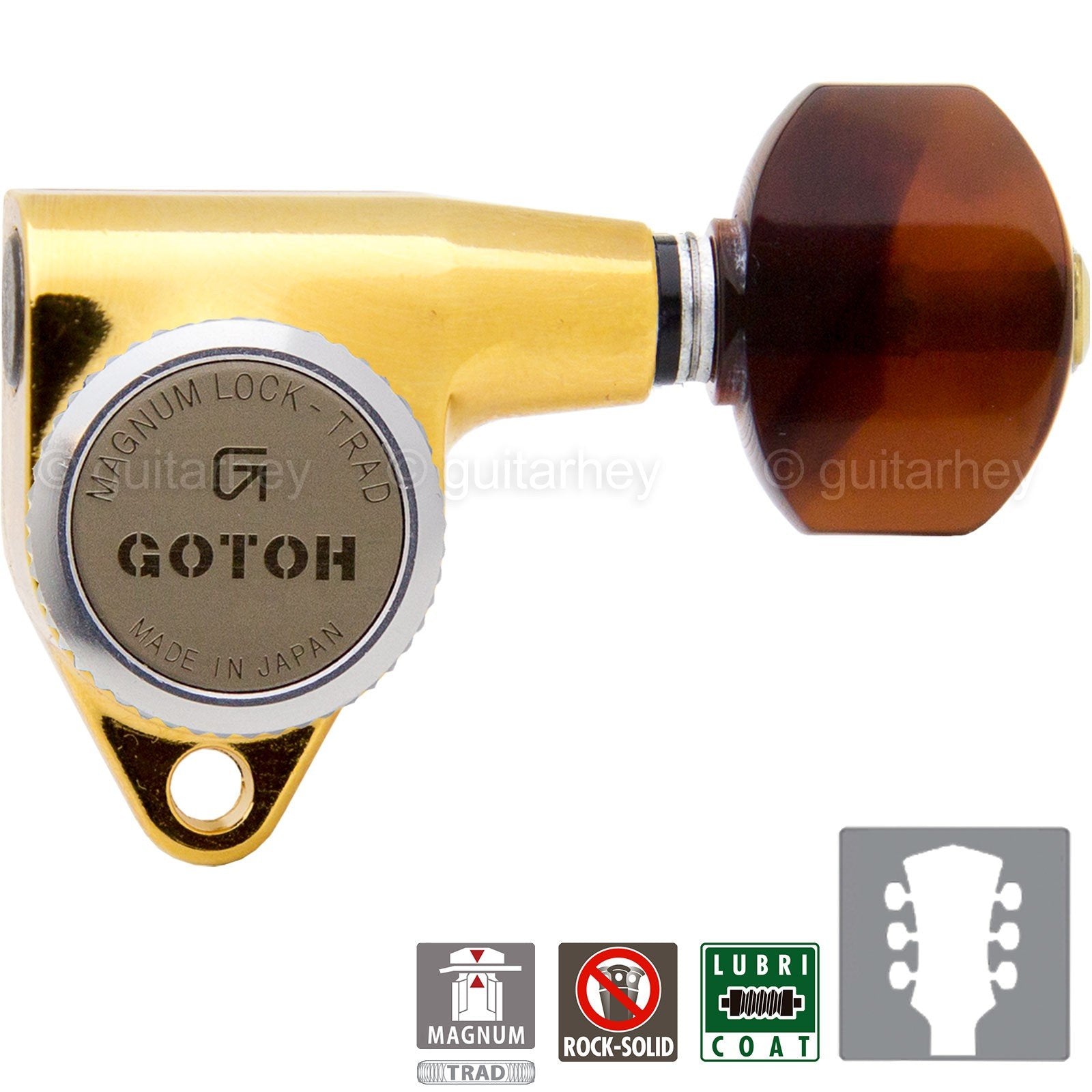 NEW Gotoh SG301 MGT Locking Tuners L3+R3 Keys w/ TORTOISE Buttons 3x3 - GOLD