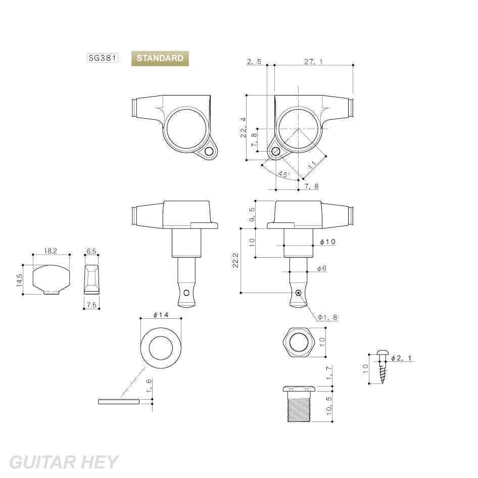 NEW Gotoh SG381 L3+R3 TORTOISE Buttons Tuning Keys 16:1 Ratio 3x3 - COSMO BLACK