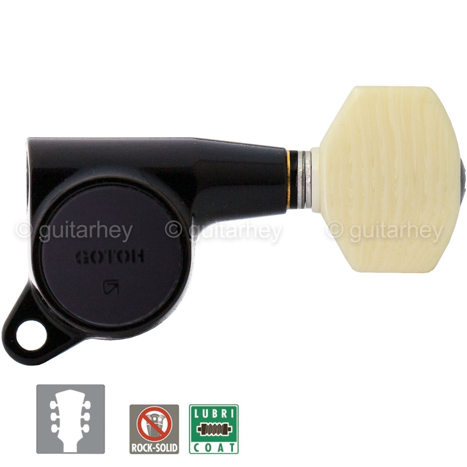 NEW Gotoh SG381-M07 MIJ L3+R3 Set Tuners IVORY Style Buttons 3x3 - BLACK