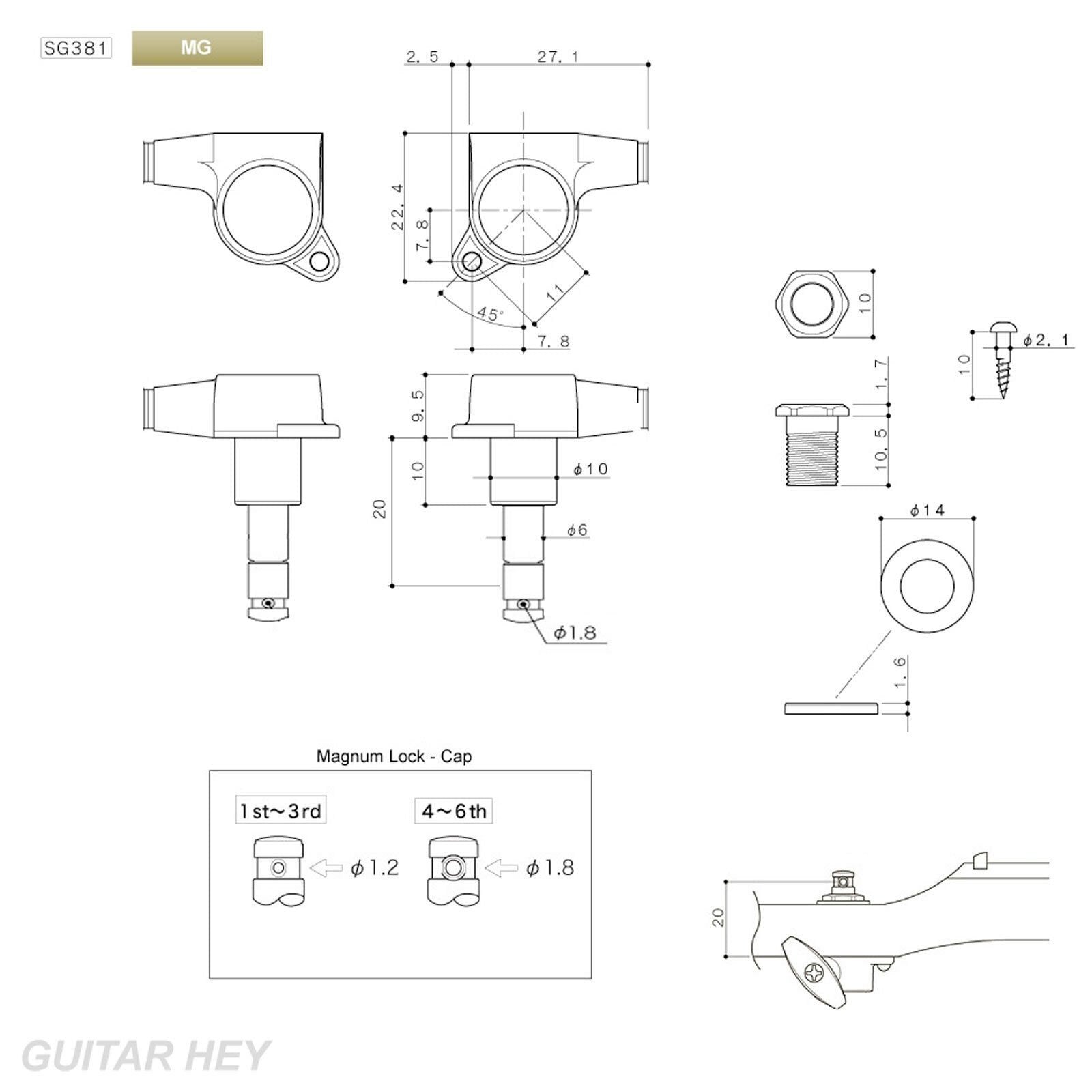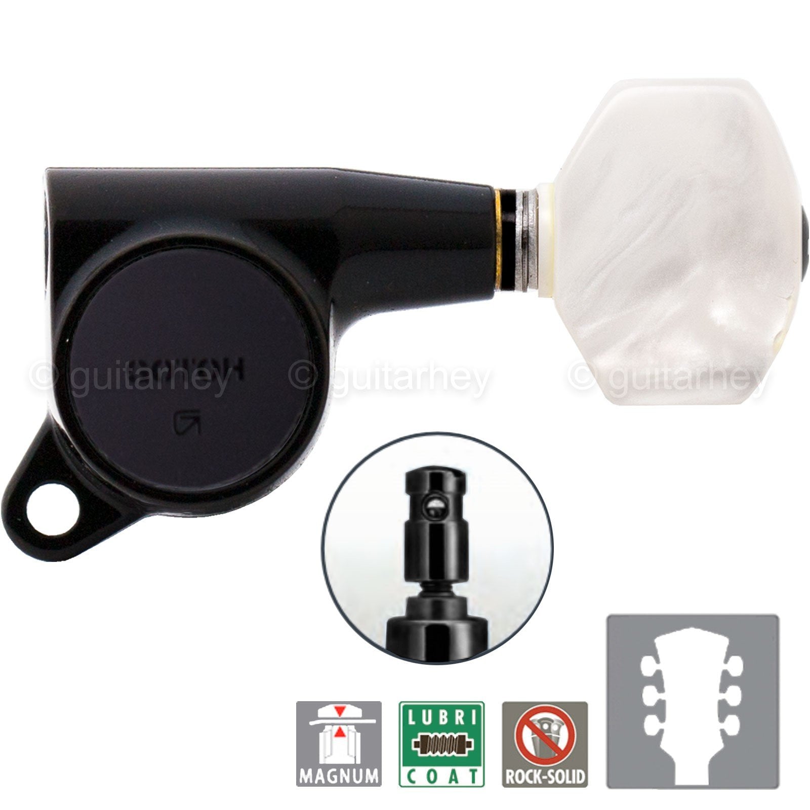 NEW Gotoh SG381-P7 MG L3+R3 Set LOCKING Mini Tuners PEARLOID Buttons 3x3 - BLACK