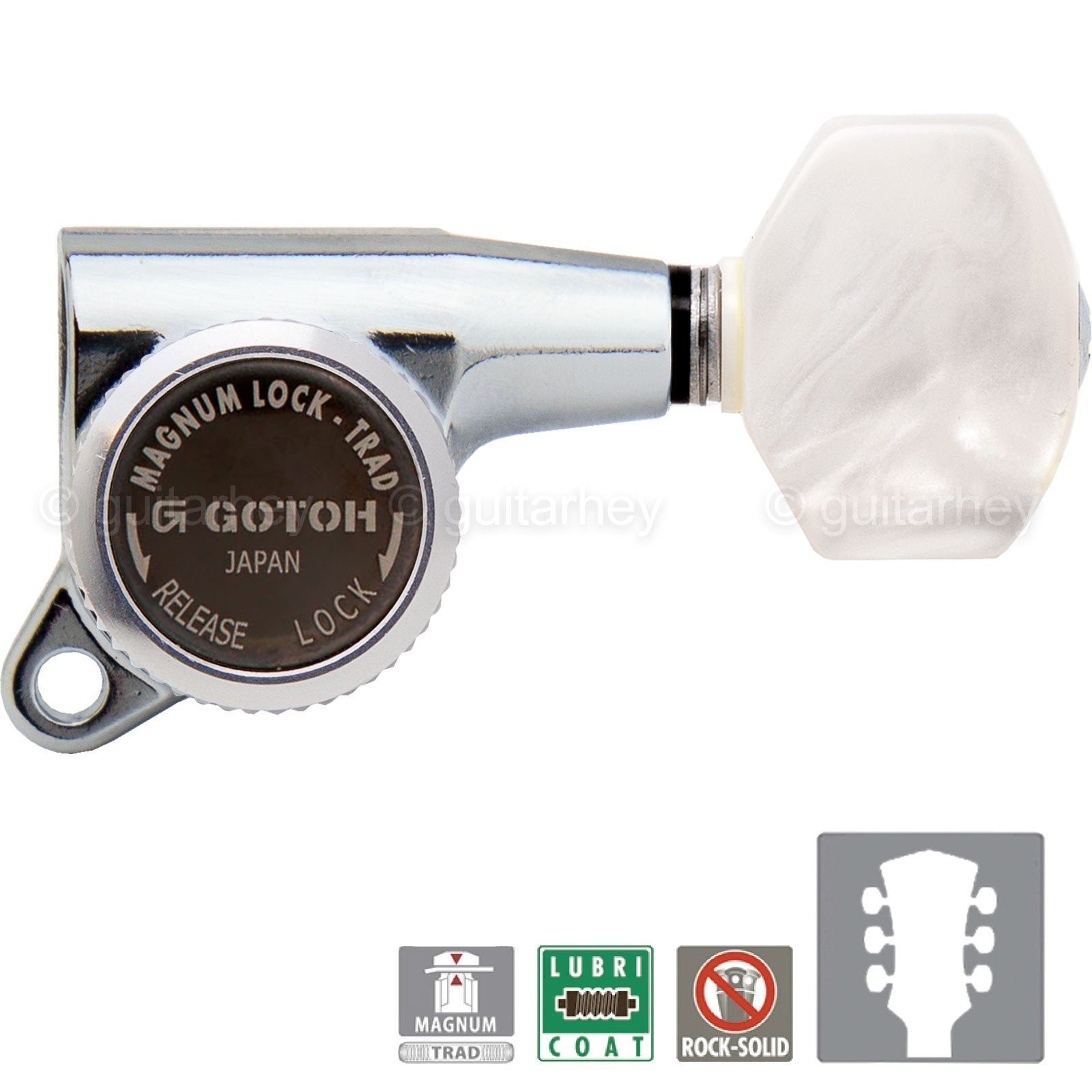 NEW Gotoh SG381 MGT PEARLOID Small Buttons MAGNUM LOCKING TRAD Set 3X3 - CHROME