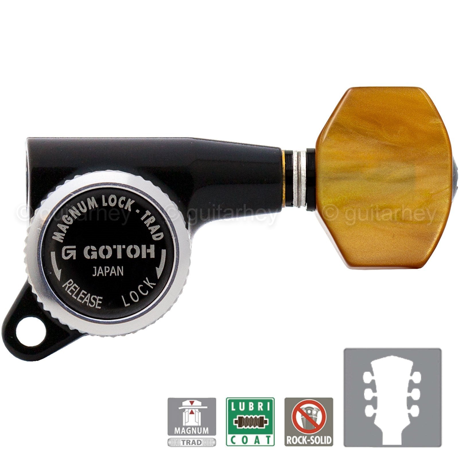 NEW Gotoh SG381-P8 MGT Locking Tuners Keys L3+R3 SMALL AMBER Buttons 3x3 - BLACK