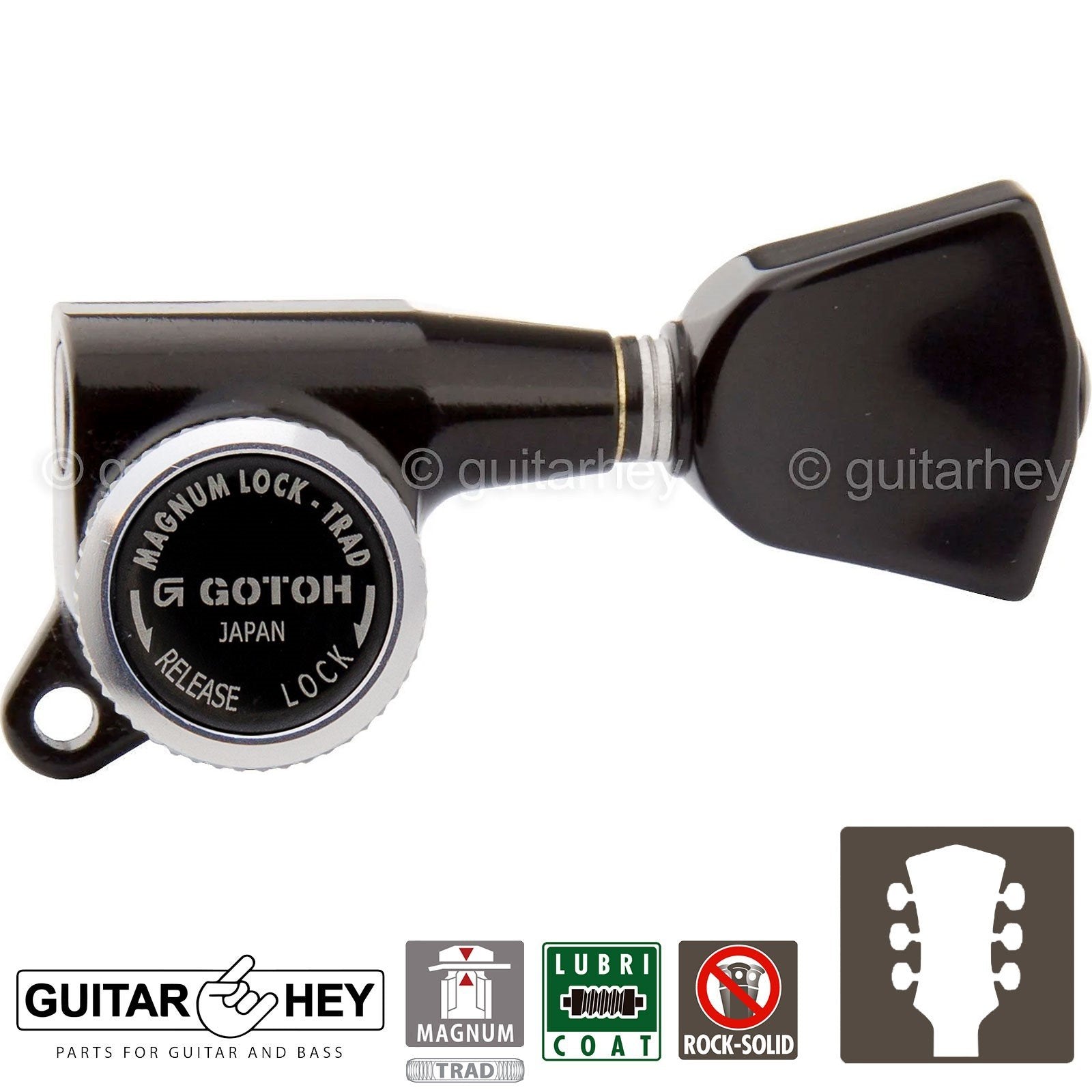 NEW Gotoh SG381-PB4 MGT Locking Keys w/ Keystone Plastic Buttons Set 3x3 - BLACK