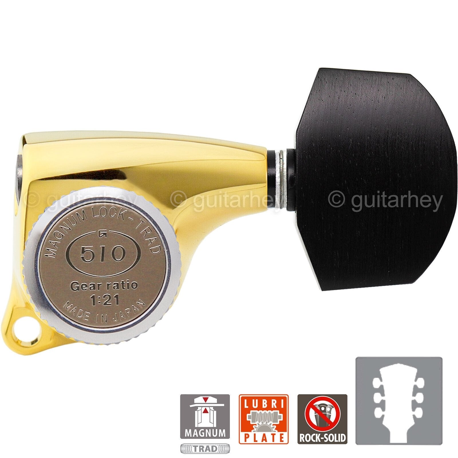 NEW Gotoh SGL510Z-EN01 MGT Locking Tuning Keys, EBONY, 21:1 Ratio Set 3x3 - GOLD