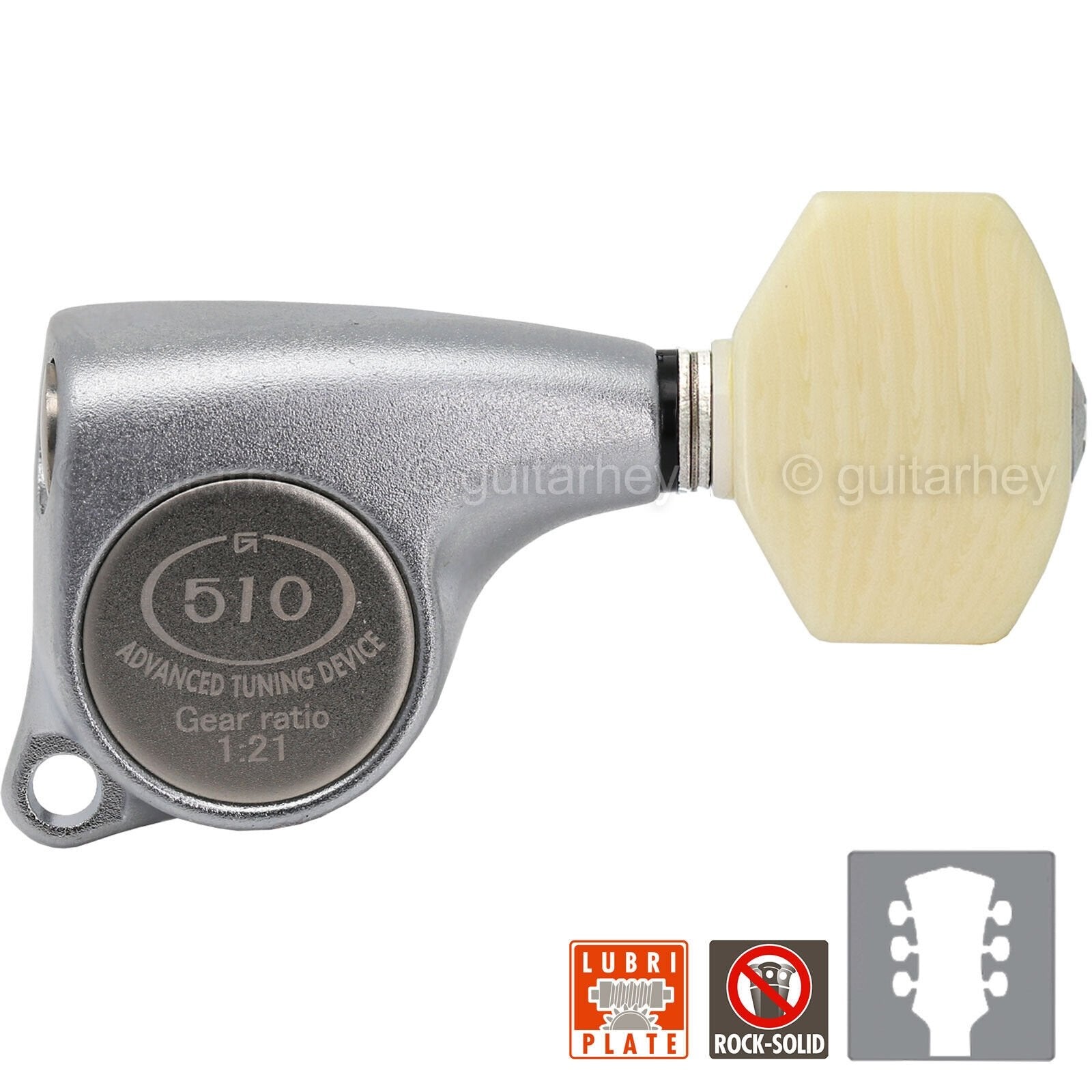 NEW Gotoh SGL510Z-M07 L3+R3 Tuners Set 1:21 Gear Ratio IVORY 3x3 - CHROME SATIN