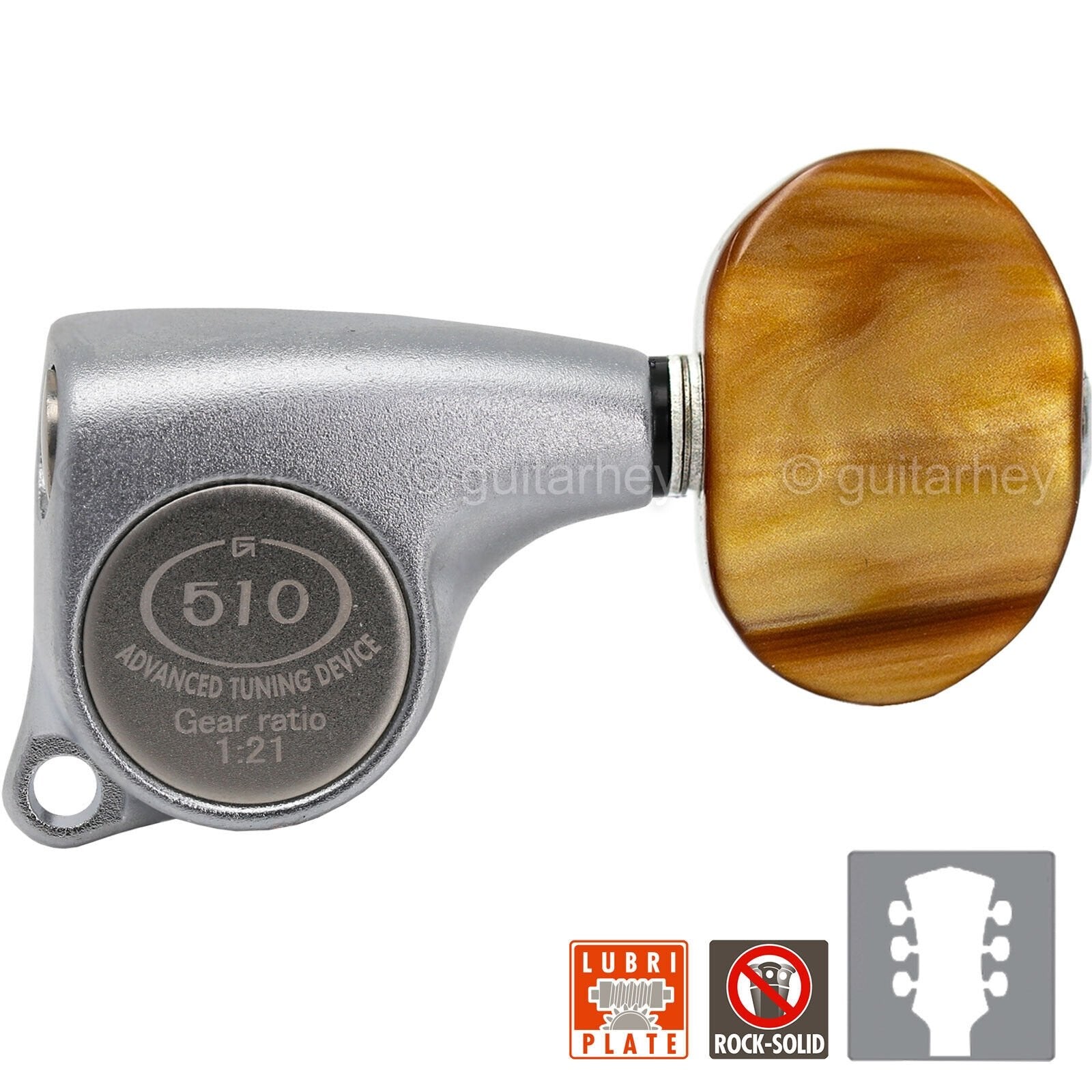 NEW Gotoh SGL510Z-P2 L3+R3 Tuners Set 1:21 Gear Ratio AMBER 3x3 - CHROME SATIN