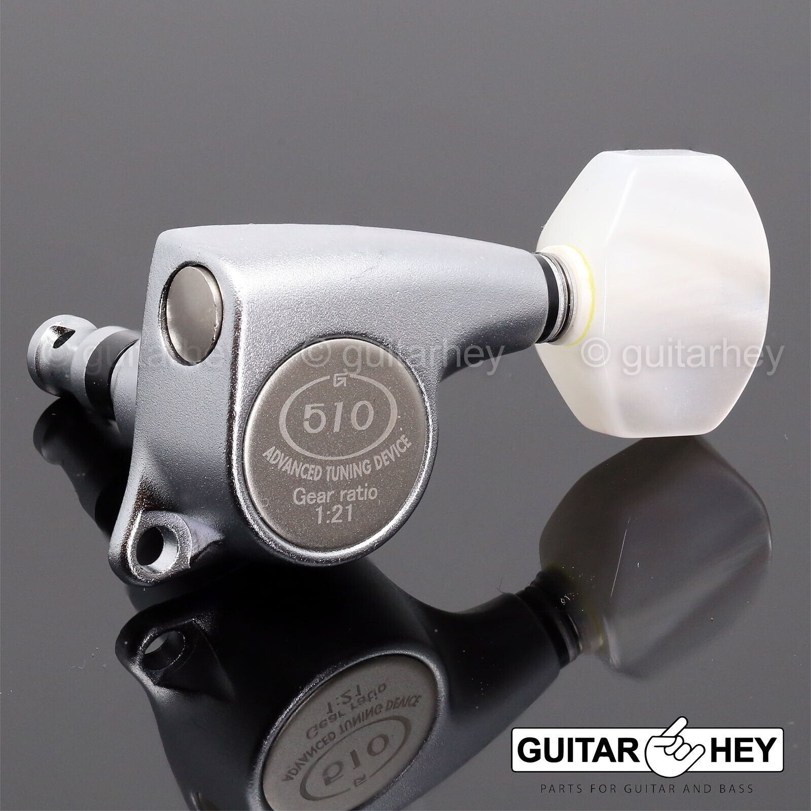 The SG510 series has evolved through improvement without compromise at any stage and come equipped with a considerable application of high-technology as standard. With the improvement of precision fitting gears, marvelous touch on playing—they have gained a considerable reputation and are trusted as the No.1 machine head by many musicians all over the world.