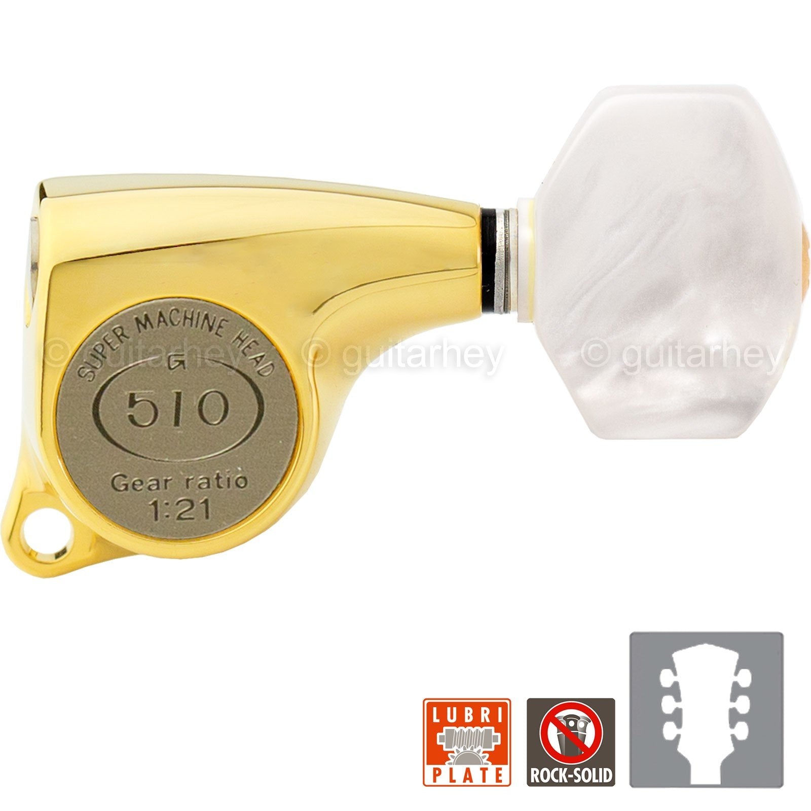 NEW Gotoh SGL510Z-P7 L3+R3 Tuners Set Pearl Buttons 1:21 Gear Ratio, 3x3 - GOLD