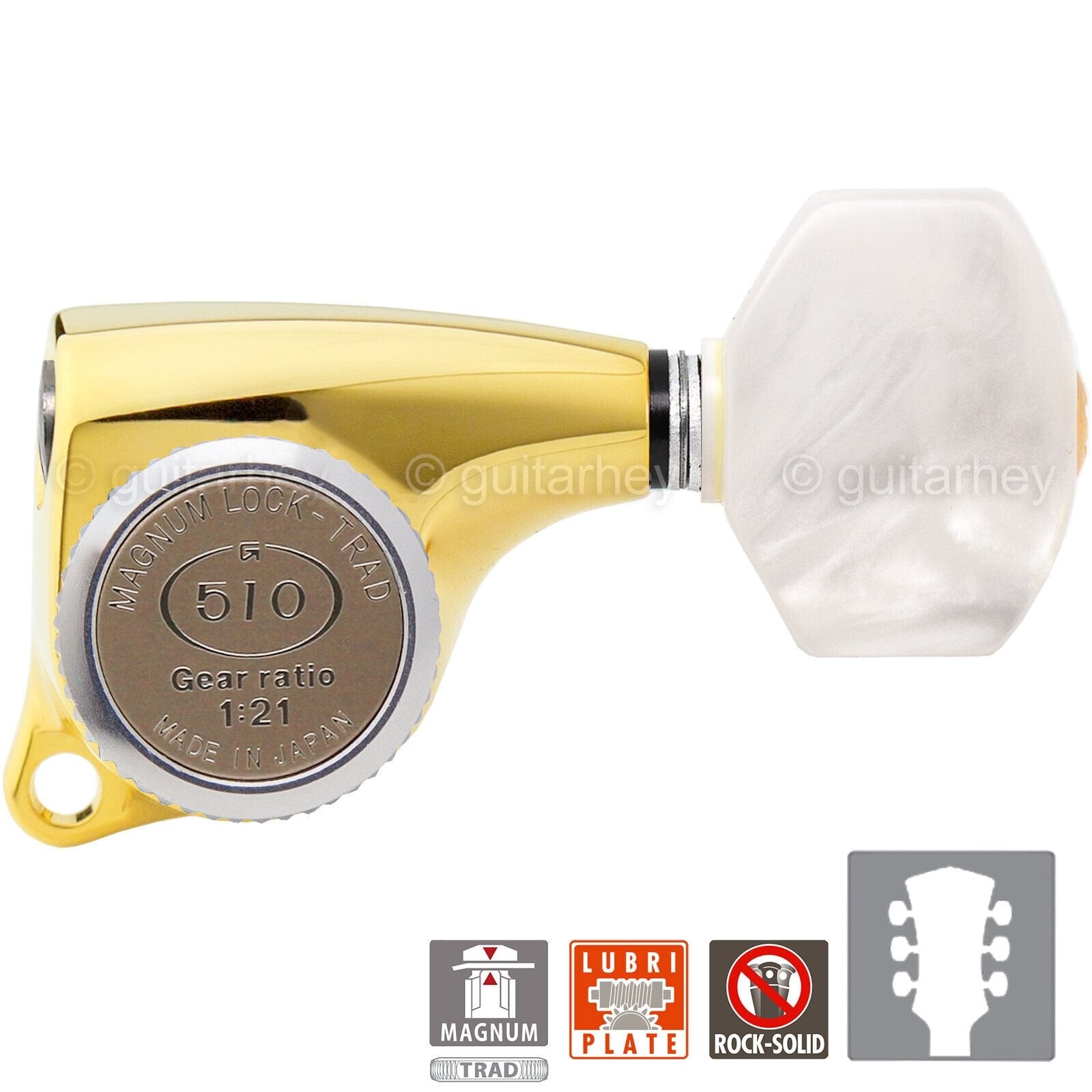 NEW Gotoh SGL510Z-P7 MGT Locking Tuning Keys, PEARLOID 21:1 Ratio Set 3x3 - GOLD