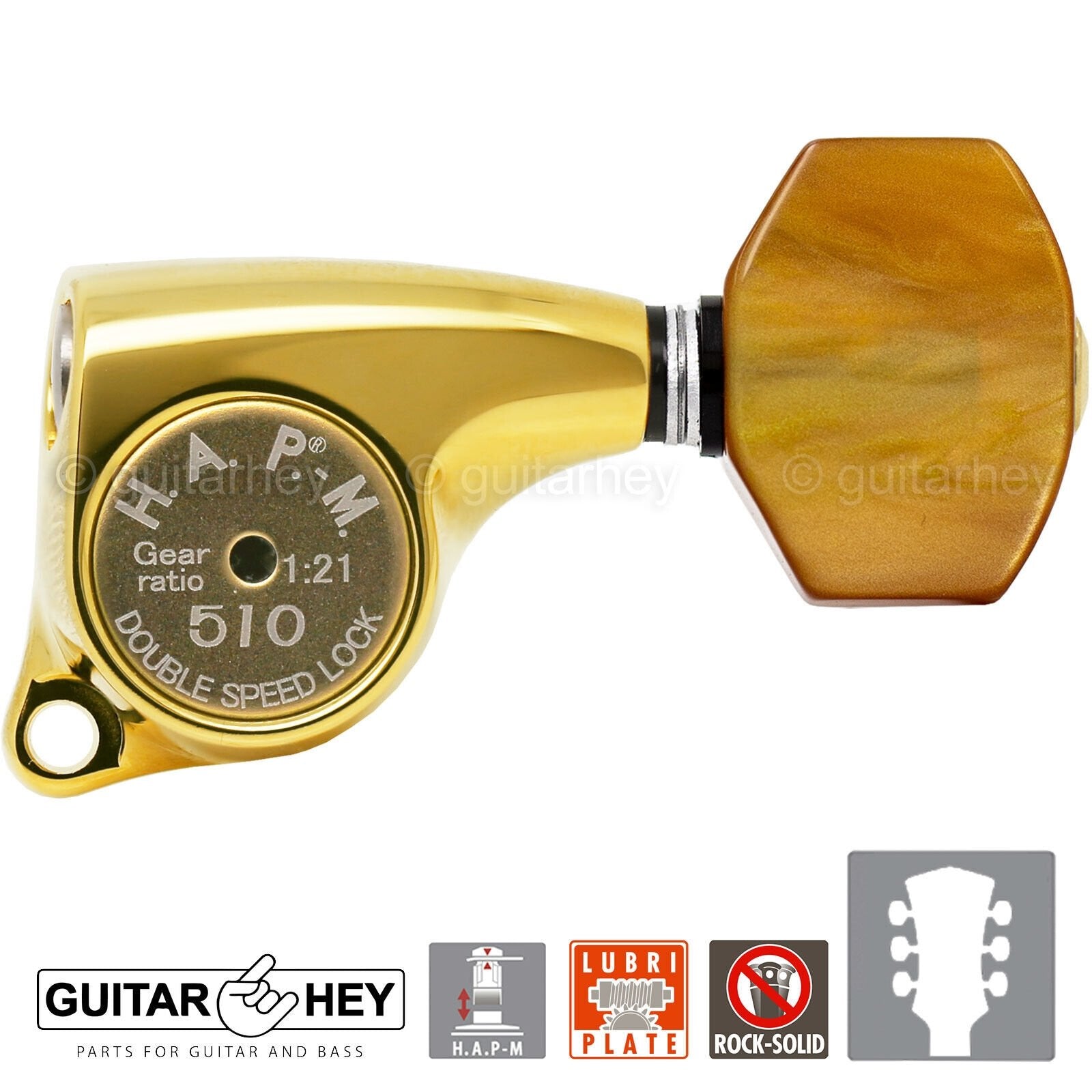 - H.A.P-M A revolutionary machine head combines the functions of HAP (Height Adjustable Post) and MG (Magnum Locking)