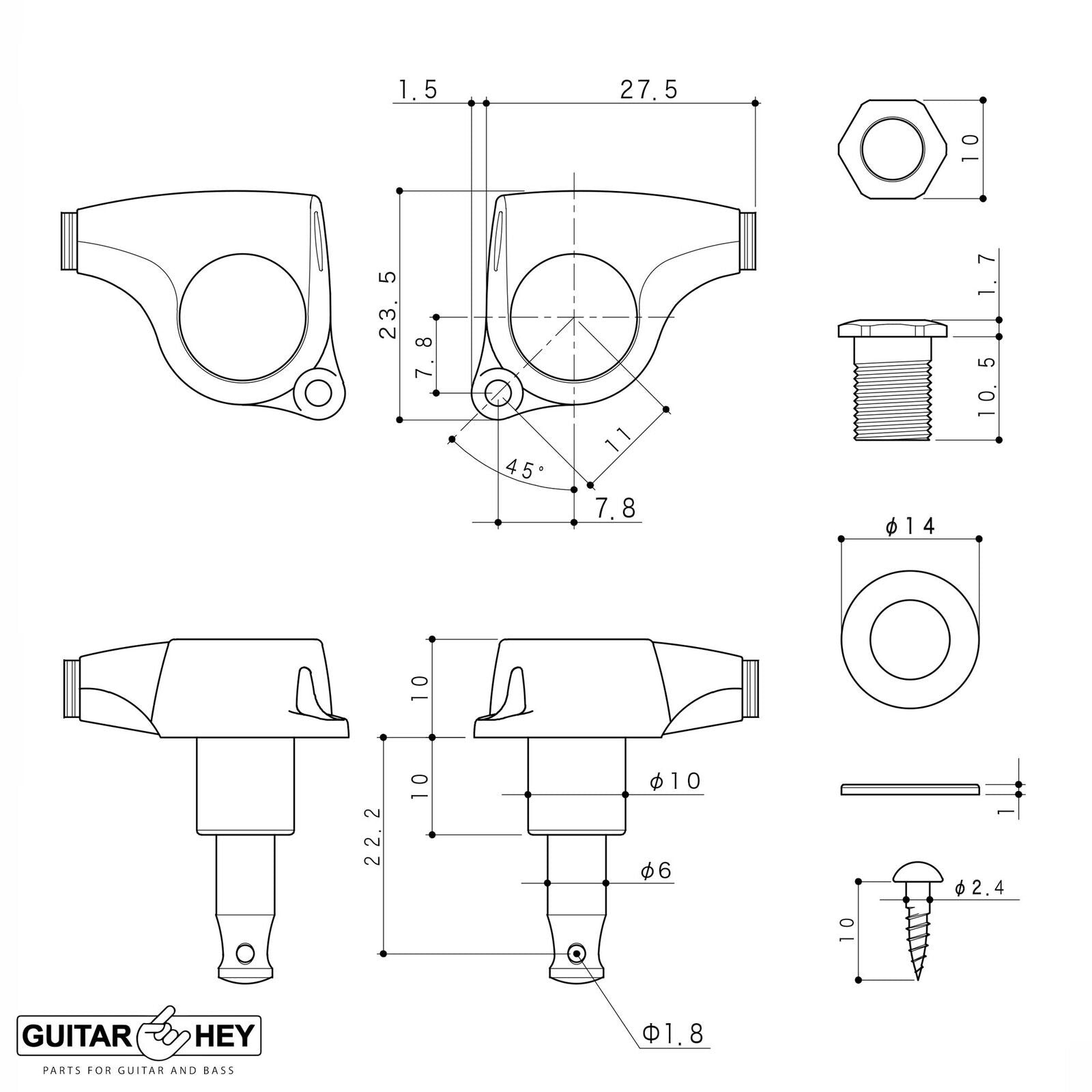 The SG510 series has evolved through improvement without compromise at any stage and come equipped with a considerable application of high-technology as standard. With the improvement of precision fitting gears, marvelous touch on playing—they have gained a considerable reputation and are trusted as the No.1 machine head by many musicians all over the world.