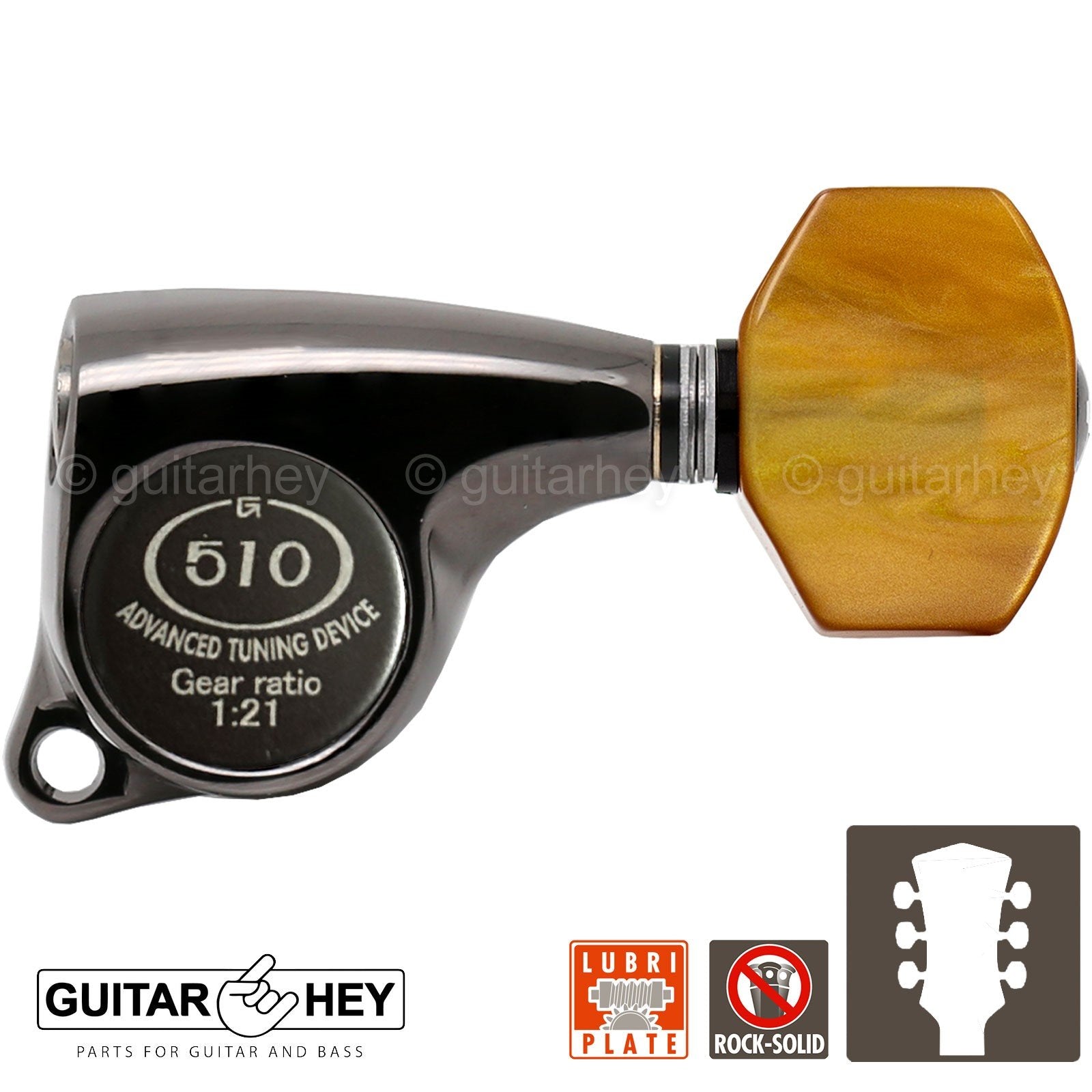 Gotoh 510 top of the line super tuning machine heads feature the accuracy and reliability Gotoh is famous for. They features a 21:1 gear ratio for precise, accurate tuning in a small footprint, and a die-cast enclosure that is permanently sealed and lubricated for years of smooth operation.