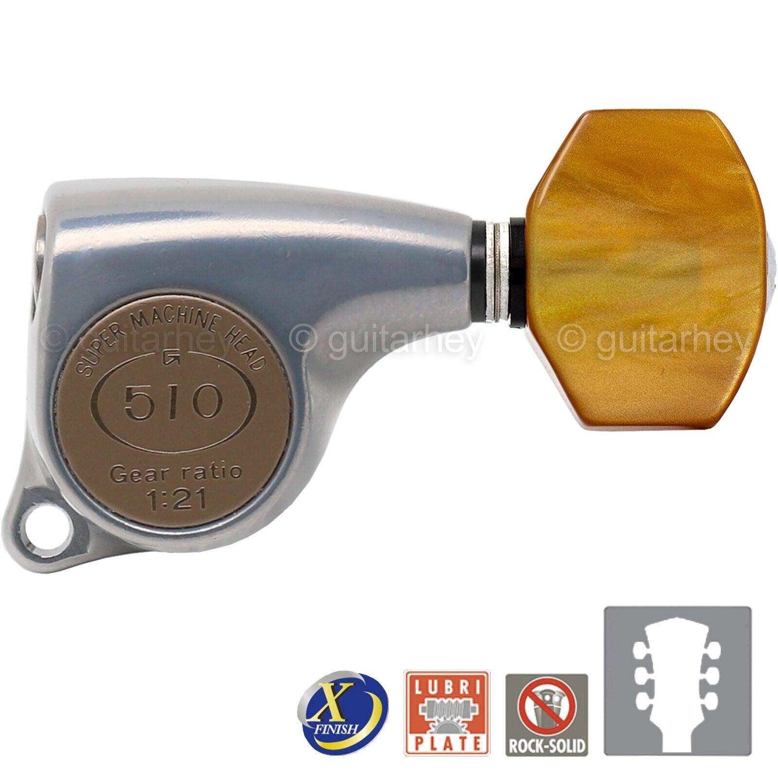 NEW Gotoh SGL510Z-P8 Tuning Keys Set 1:21 Ratio 3x3 - ANTIQUE X-FINISH CHROME