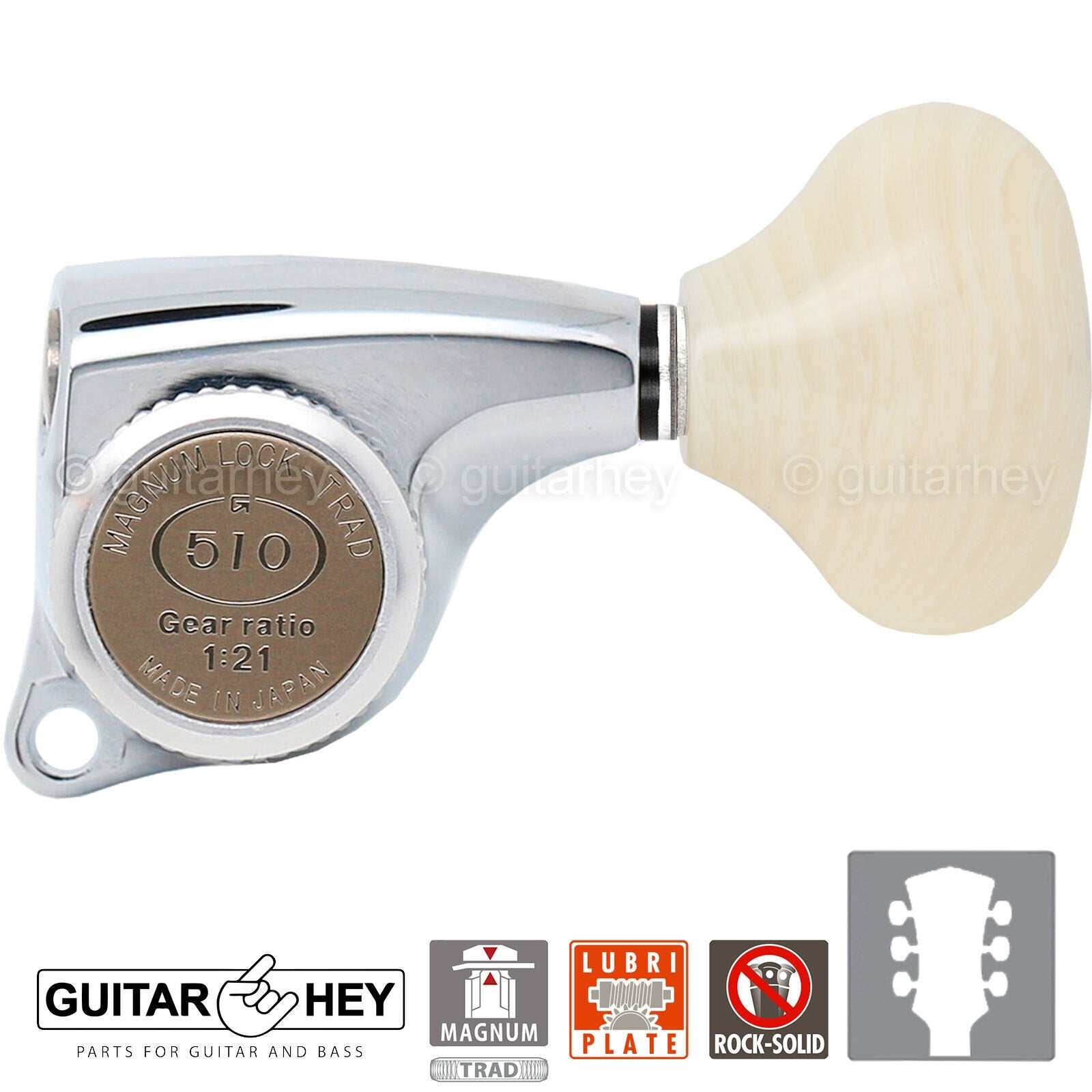 Gotoh 510 top of the line super tuning machine heads feature the accuracy and reliability Gotoh is famous for. They features a 21:1 gear ratio for precise, accurate tuning in a small footprint, and a die-cast enclosure that is permanently sealed and lubricated for years of smooth operation.