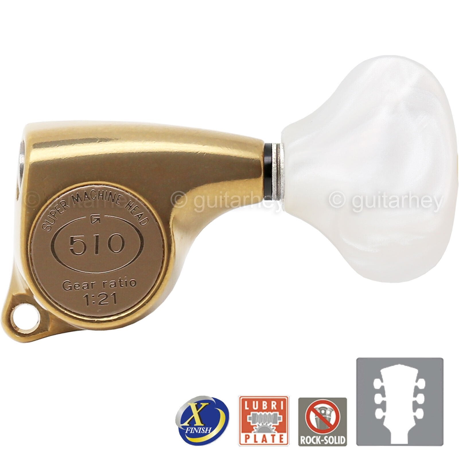 Gotoh 510 top of the line super tuning machine heads feature the accuracy and reliability Gotoh is famous for. They features a 21:1 gear ratio for precise, accurate tuning in a small footprint, and a die-cast enclosure that is permanently sealed and lubricated for years of smooth operation.