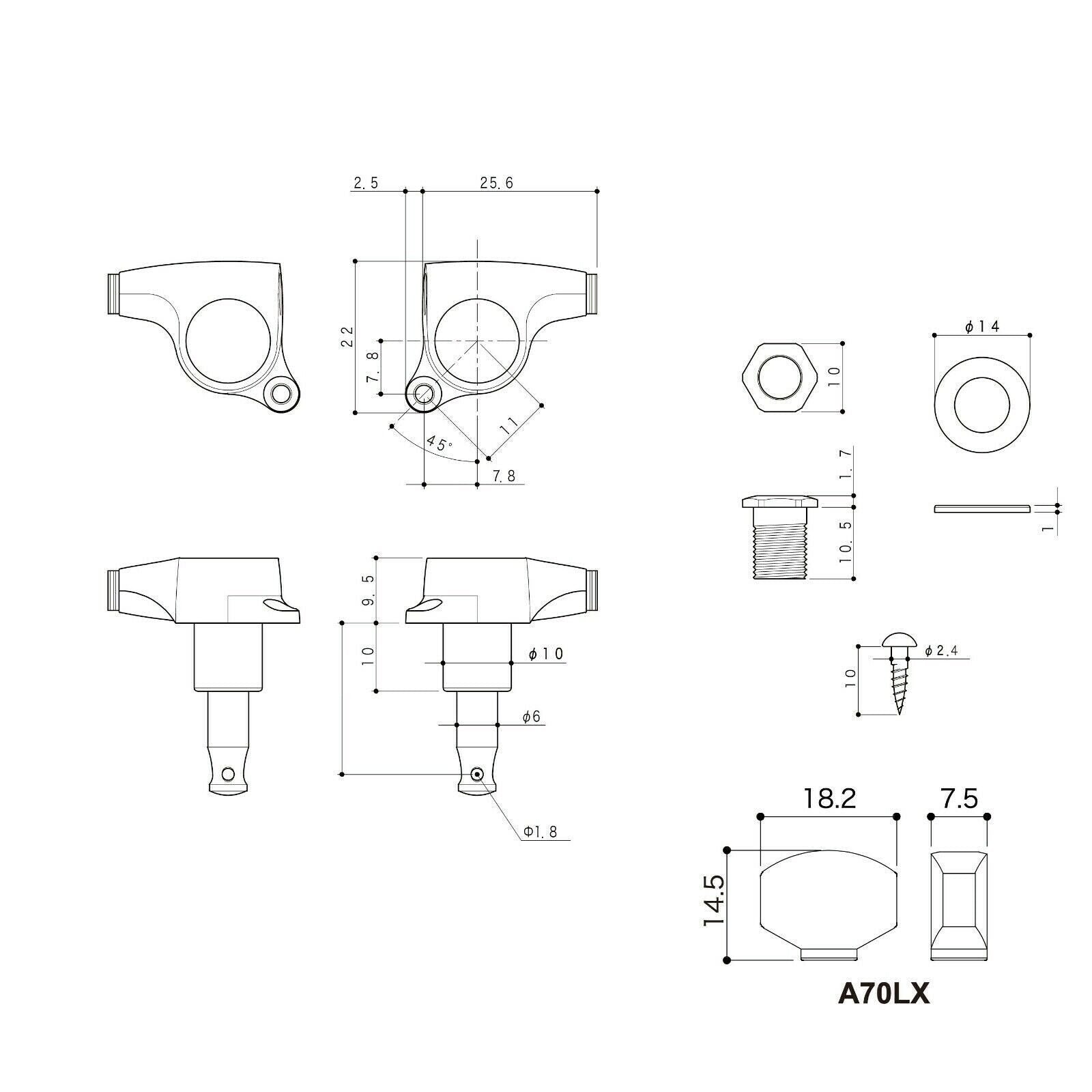 NEW Gotoh SGS510Z-A70LX Luxury Mode 6 In-line Mini Tuners LEFT-HANDED - GOLD