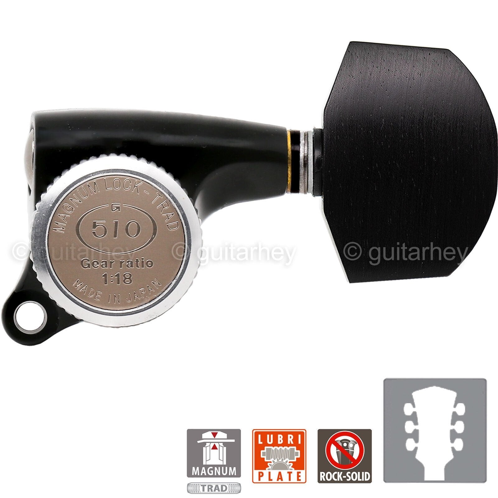 NEW Gotoh SGS510Z-EN01 MGT L3+R3 Set Mini LOCKING Tuners 1:18 Ratio 3x3 - BLACK