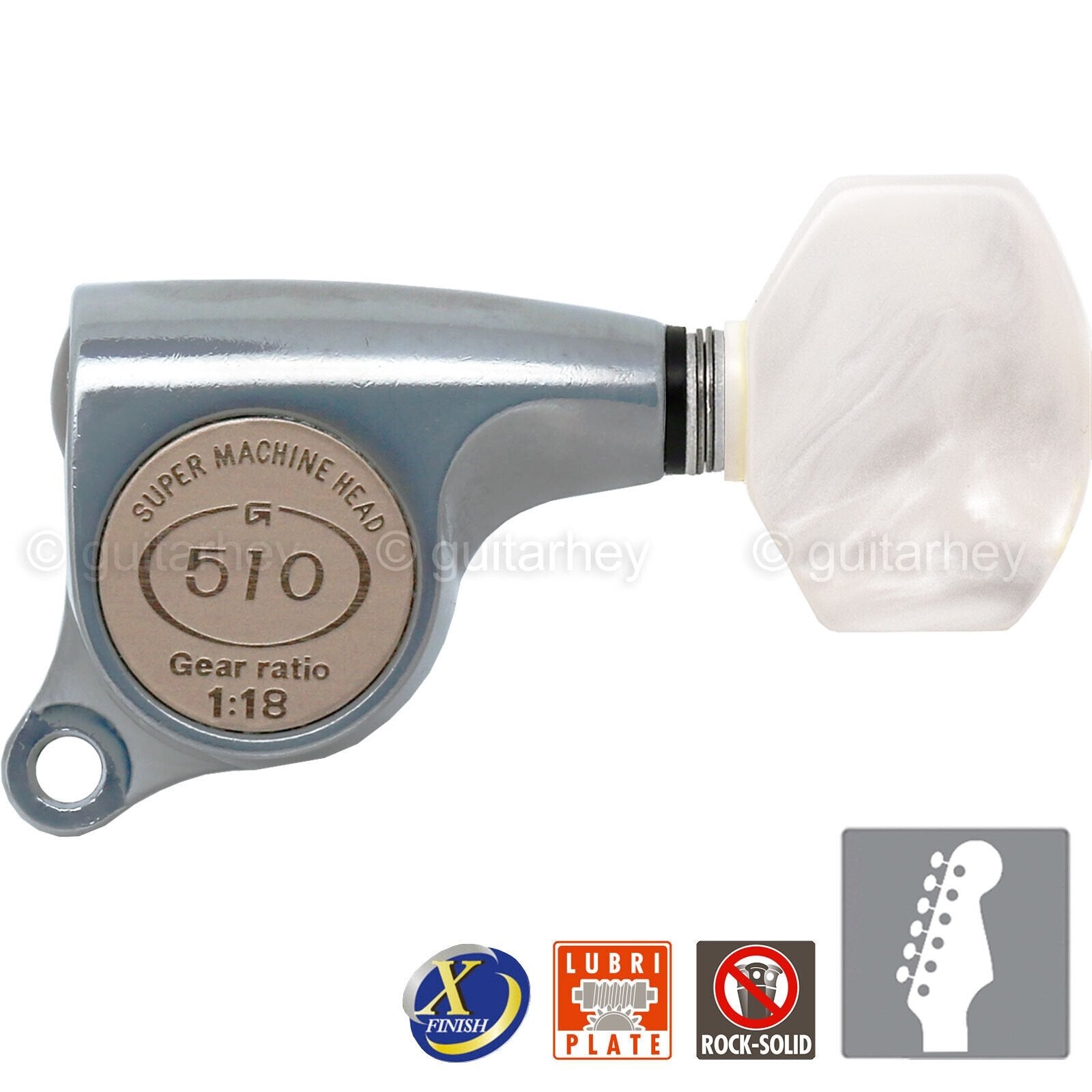 NEW Gotoh SGS510Z-P7 6 in Line Set Mini Tuners PEARL Buttons 18:1 - X-CHROME