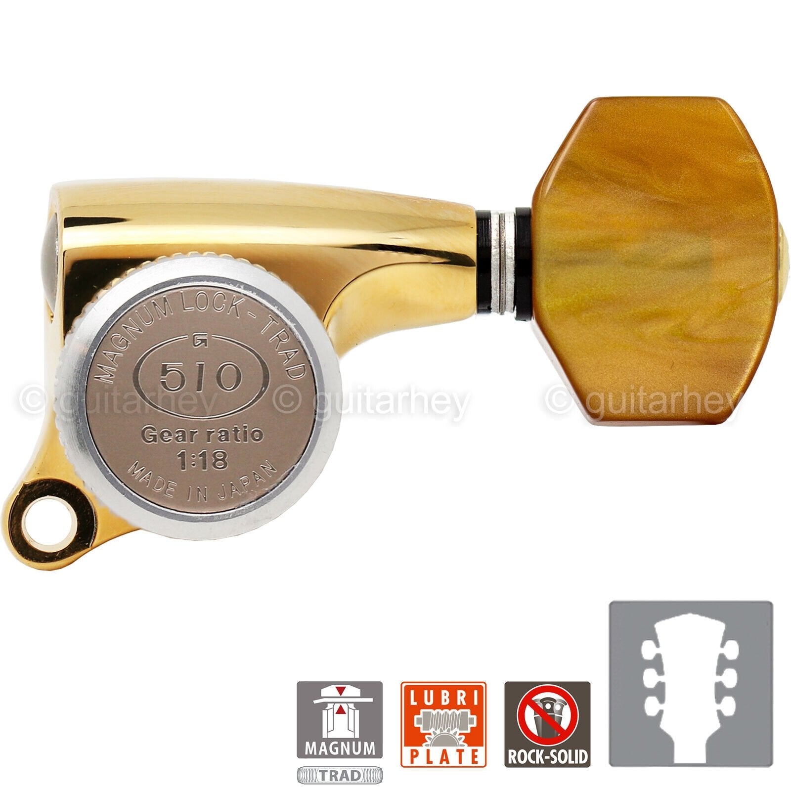 NEW Gotoh SGS510Z-P8 MGT L3+R3 Set Mini LOCKING Tuners 1:18 Ratio 3x3 - GOLD