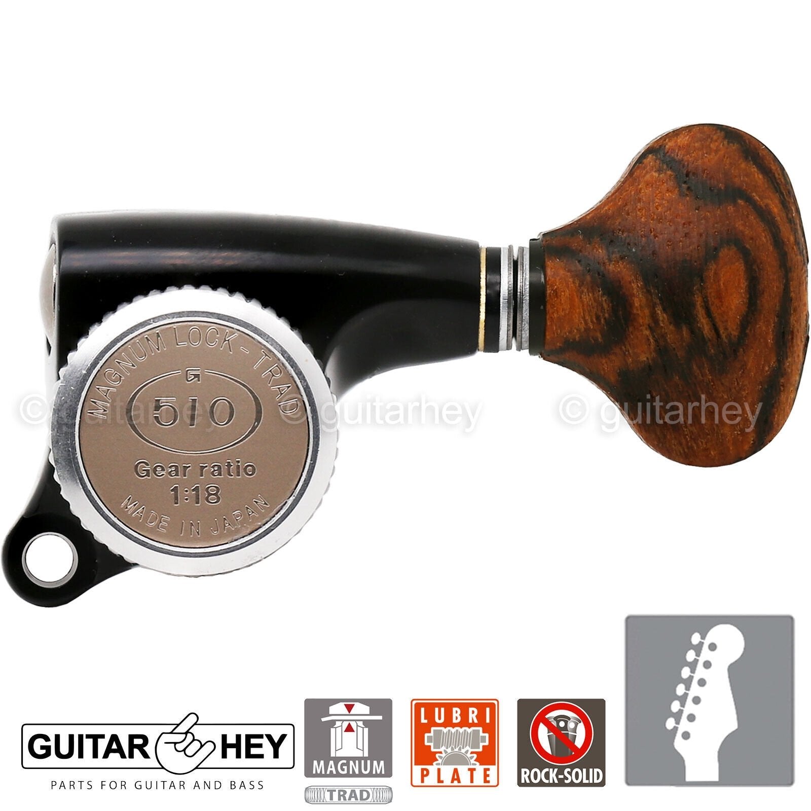 NEW Gotoh SGS510Z-RS5 MGT 6 in line Advanced Tuning Locking Tuners Set - BLACK